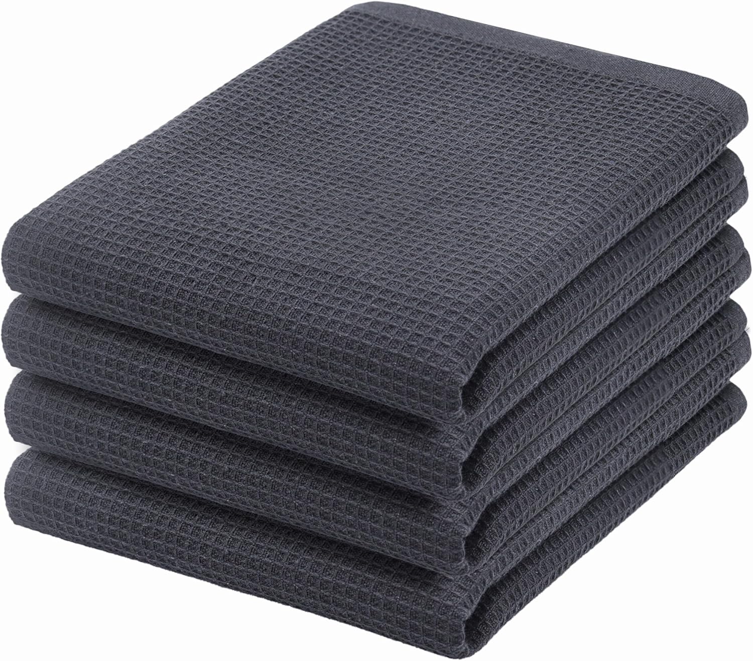 - Pack of 4 Waffle Weave Dish Towels measuring 15 by 25 Inches.