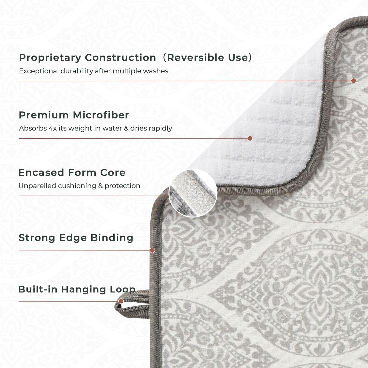 - 【Quick Absorption】This microfiber dish mat features a 3-ply design that can rapidly absorb up to 4 times its weight in water. It combines a layer of fast-drying composite sponge between two highly absorbent and durable layers of microfiber, effectively addressing the issue of dampness after dishwashing and helping to maintain tidy countertops.