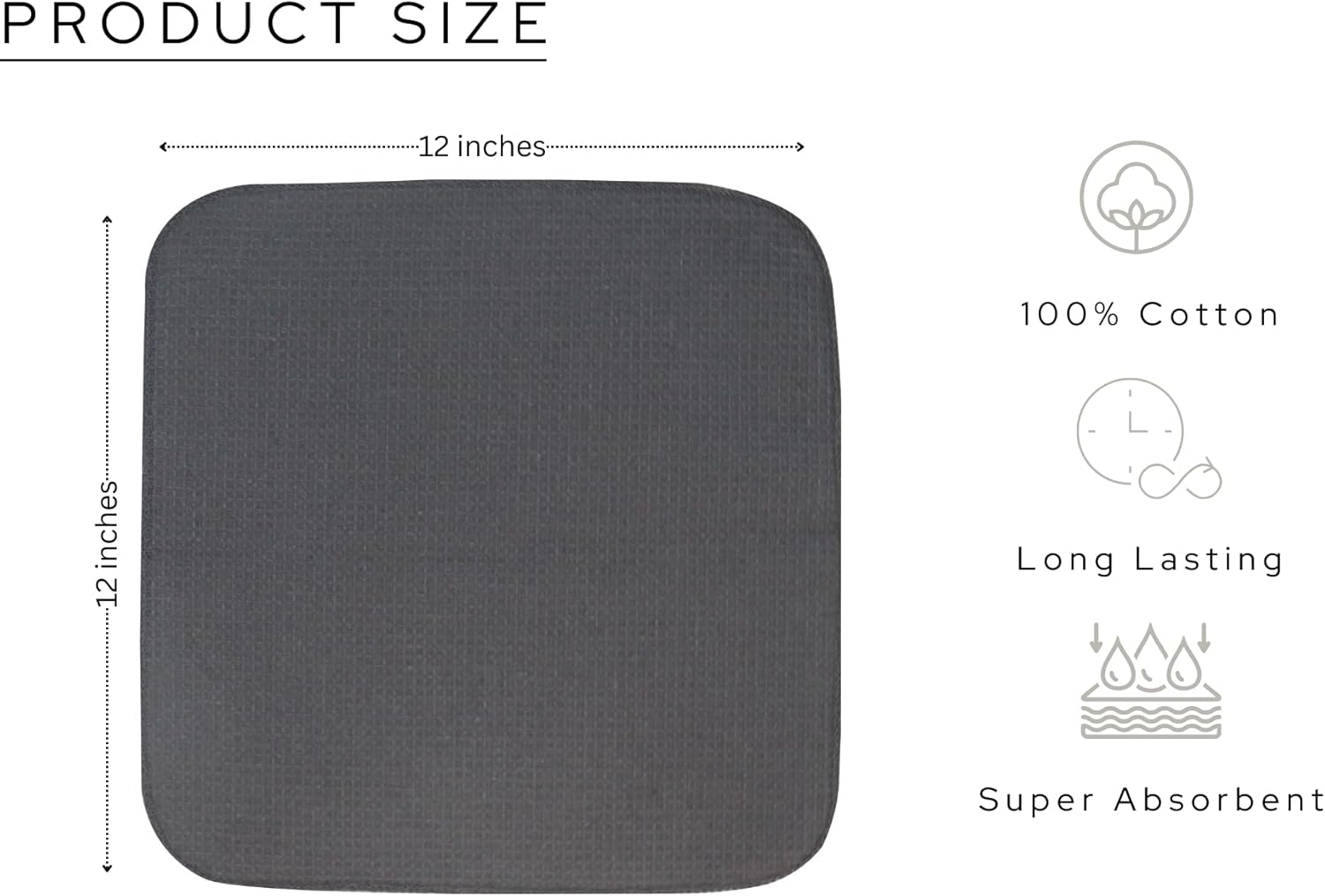 PurpleEssences Dish Cloths and Dish Rags - 6 Pack Waffle Weave Solid Kitchen Dish Wash Cloths, 100% Cotton, 12 x 12 Inches, Ultra Soft Absorbent Quick Drying - Spring Summer - Dark Grey