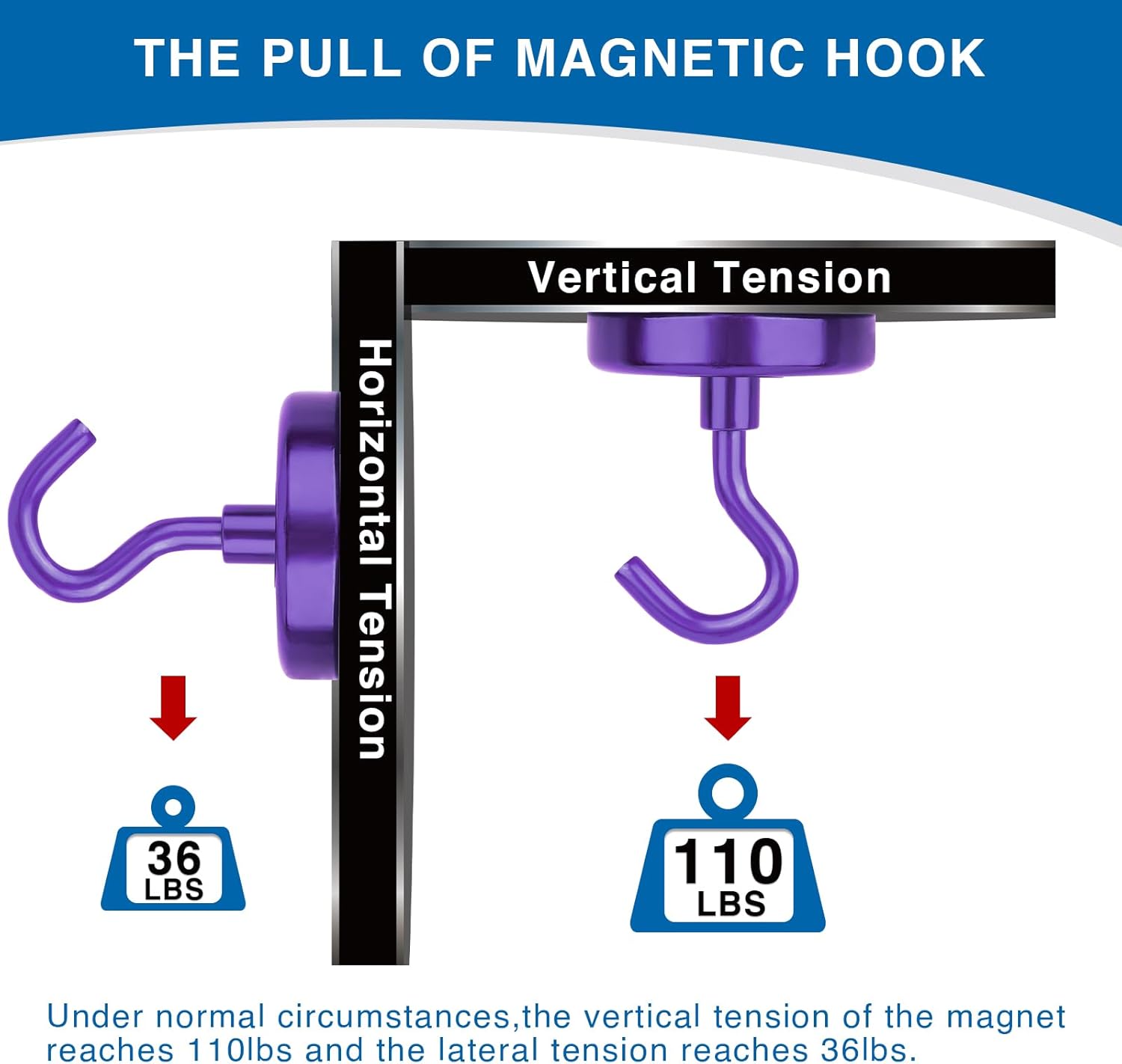 LOVIMAG Cruise Ship Essentials, 110Lbs Cruise Door Magnets, Purple Cruise Magnetic Hooks, Magnetic Hooks Heavy Duty for Hanging Celling, Grill, Refrigerator Kitchen-6 Pack