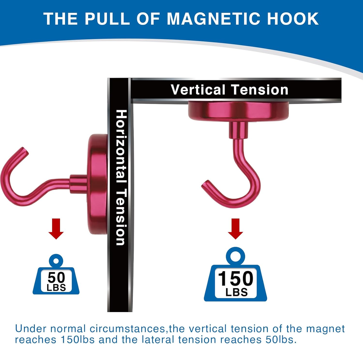 - 【MAGNETIC HOOKS】With our magnetic hooks, you can get over 150LBS of pulling force vertically and 50LBS horizontally. These colorful metal magnetic hooks for cruise essentials are very sturdy and perfect for hanging the items you need to make your life easier.