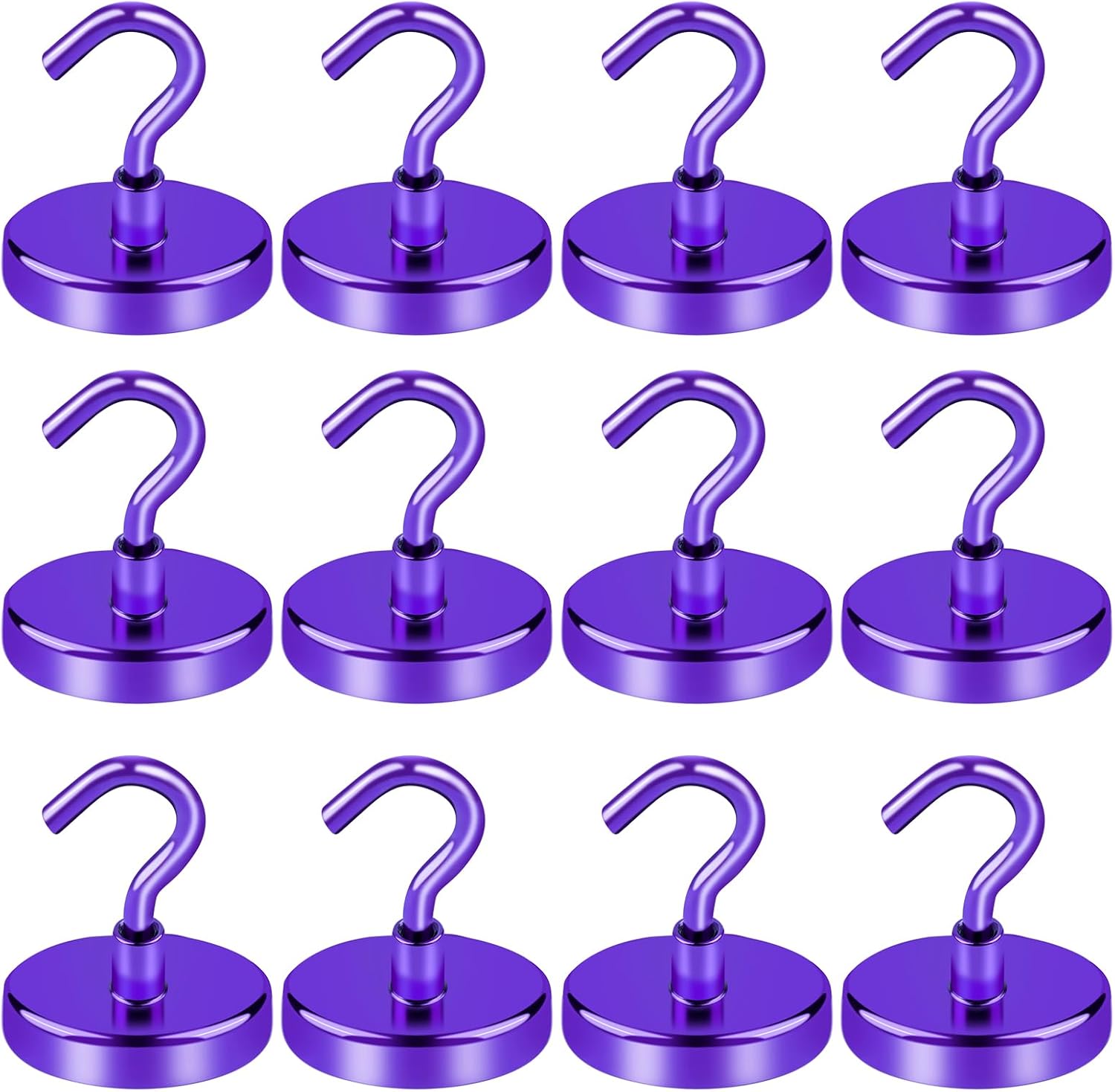 LOVIMAG Magnetic Hooks for Cruise Cabins, Cruise Essentials Must Haves, Cruise Magnets, Magnetic Key Holder, Strong Magnetic Hooks for Hanging, Fridge, Grill -12 Pack, 110lbs, Purple