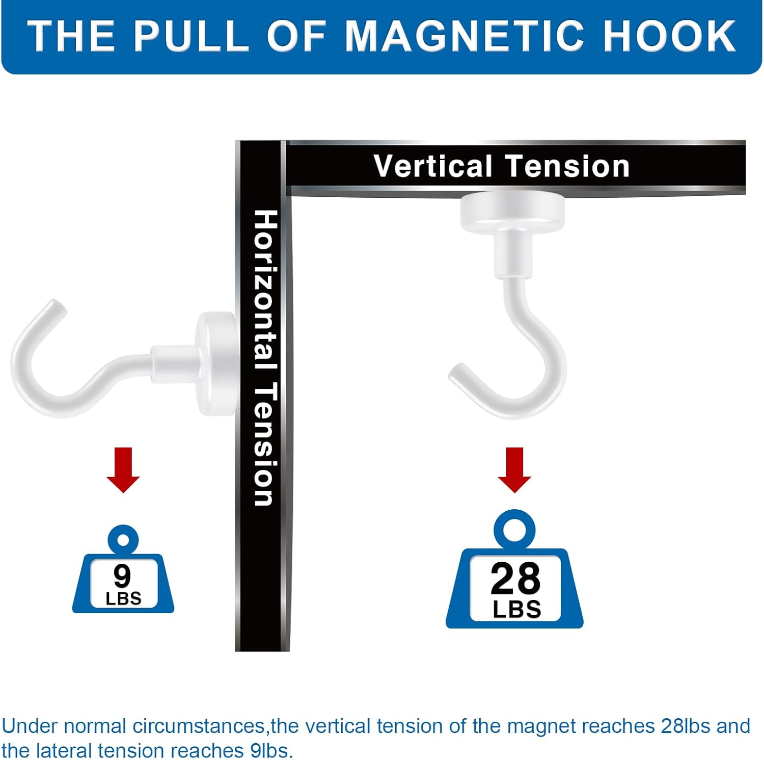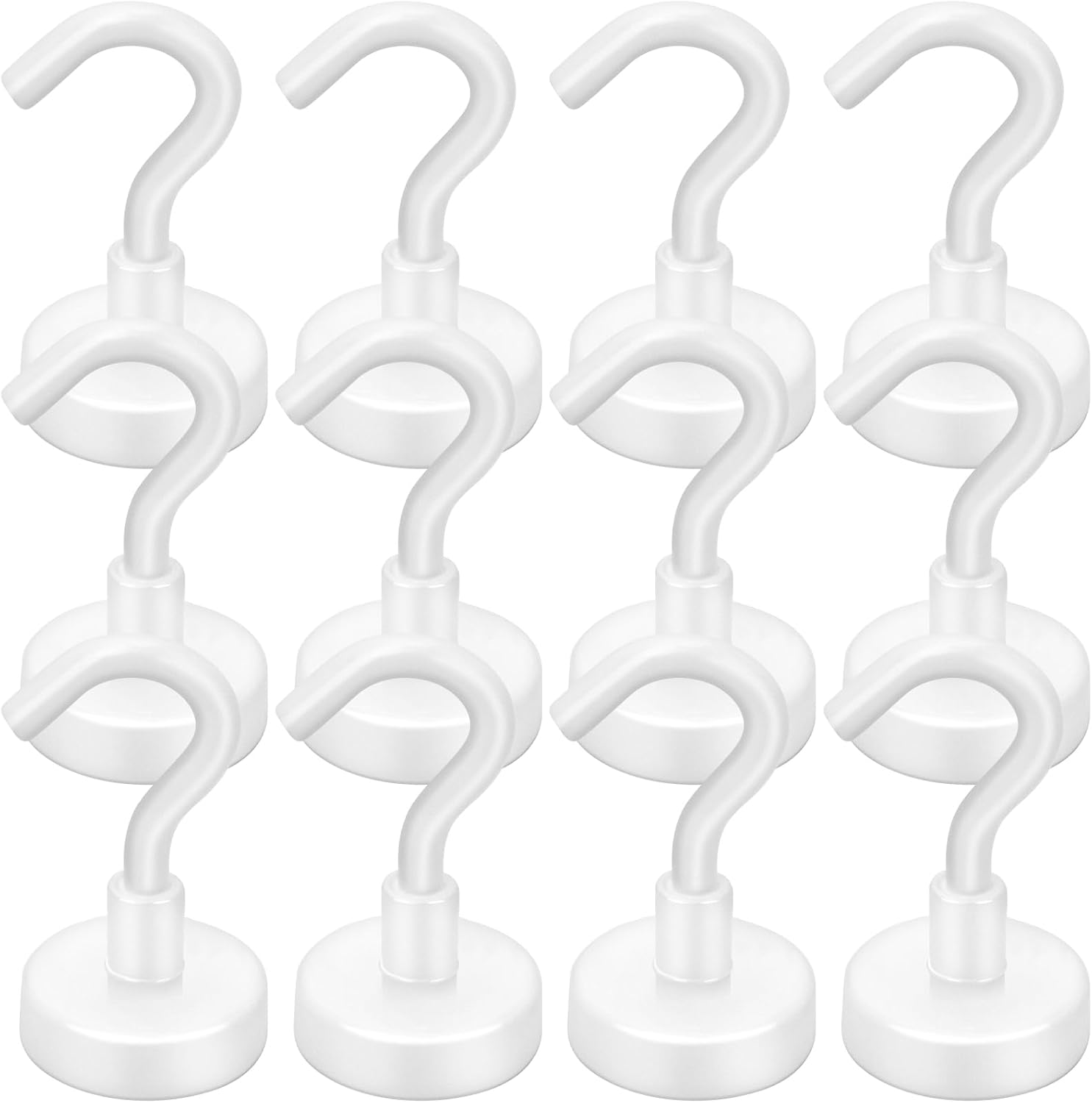 LOVIMAG Cruise Essentials - 28lbs Magnetic Hooks for Cabins, White Cruise Magnets for Door, Strong Magnetic Hooks for Hanging, Refrigerator, Ceiling, Grill - 12 Pack