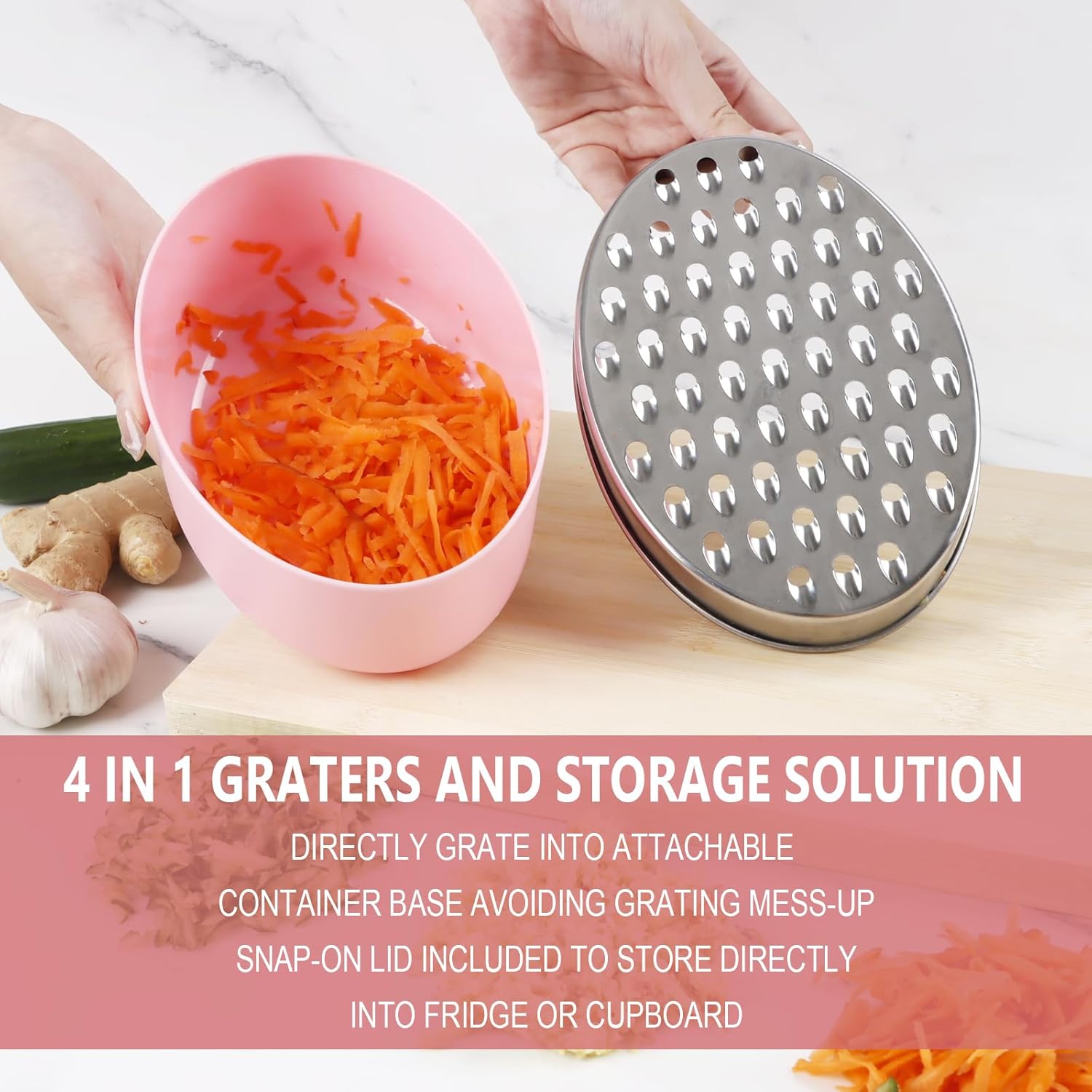 - AIRTIGHT STORAGE CONTAINER & SUPER EASY TO CLEAN - It comes with attachable container base to hold food for mess-free grating, with securely fitting snap on lid. Dishwasher safe, or easily washed with soap and water.