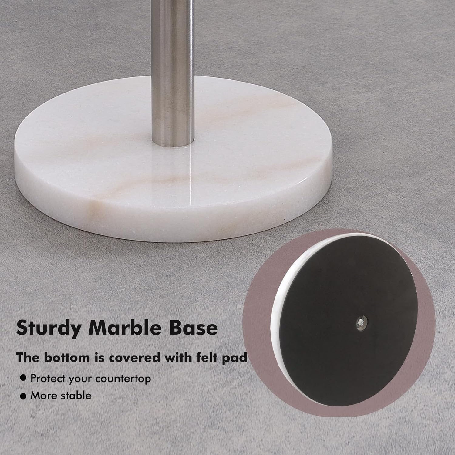 - Sturdy weighted marble base, no tipping over when ripping paper off with one hand. Constructed with stainless steel, paper towel holder stand is very heavy. (Please note that the natural marble base is unique and with little difference in textures/colors, not the exactly same as the images showed)
