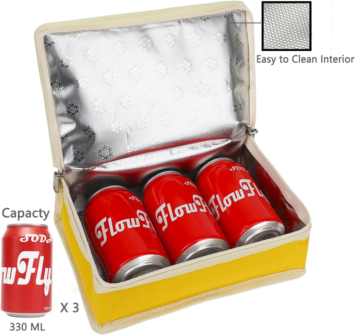 FlowFly Small Insulated Lunch box Portable Soft Bag Mini Cooler Thermal Meal Tote Kit with Handle for Work & School, Bright Yellow