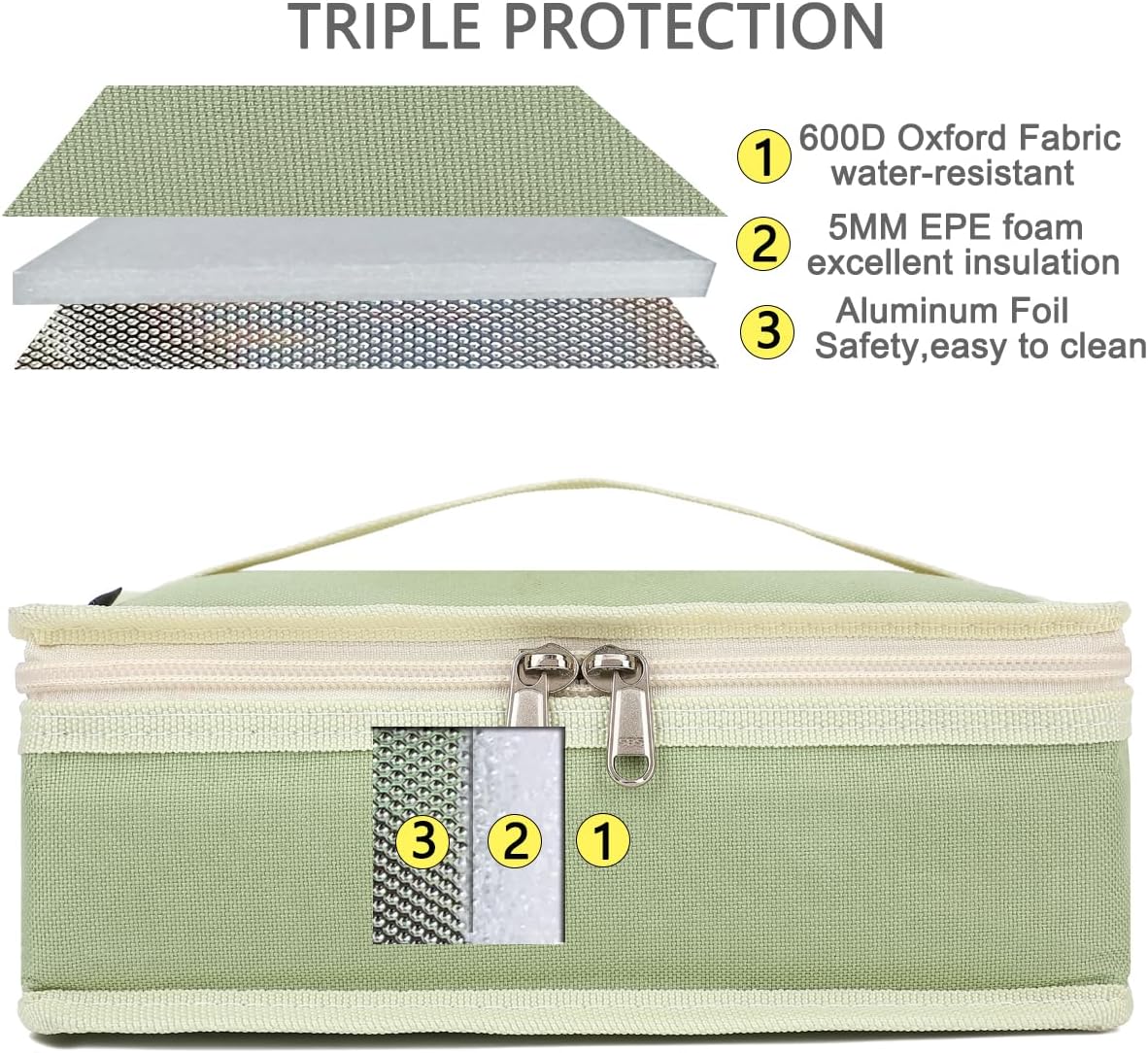 - ✿ Material:The FlowFly reusable Lunch Bag is made of the highly durable 600D Polyester,food grade aluminum foil inside, padded with extra thick 5mm PE foam and sturdy zippers.