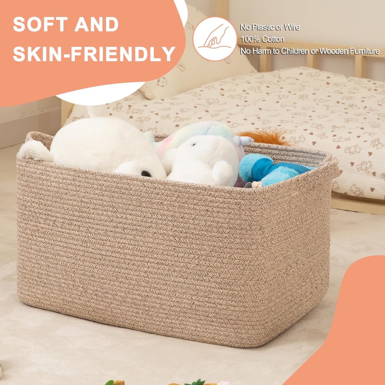 - Natural Cotton: SIXDOVE high-quality large blanket basket is made of cotton rope, No Nasty No Disgusting Smell, safe for Intimate Clothing. In addition, this woven basket for storage has no sharp edges and a hard surface, safe for kids, elders, and pets