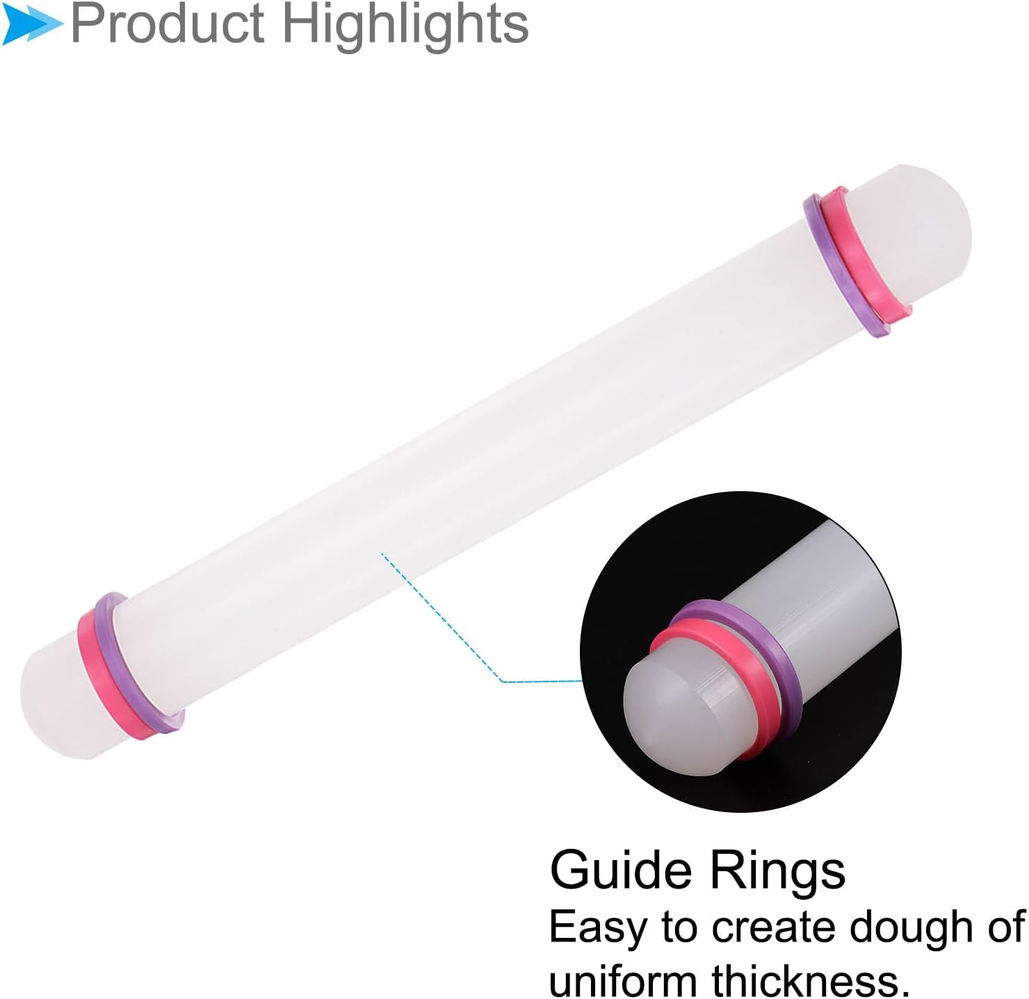 - ★ Guide Rings --- The rolling pin is equipped with guide rings, making it easy to create dough of uniform thickness and ensuring your fondant is rolled to bakery-quality results.