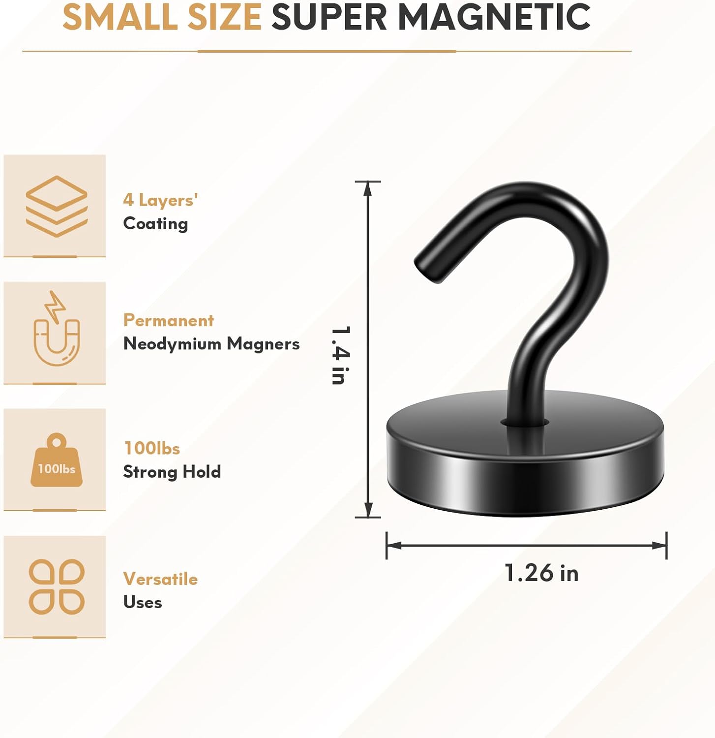 - ✔ VERSATILE USE- Neosmuk’s strong neodymium magnetic hooks were endowed with a strong capability for holding various items wherever there is iron or steel. This magnet hook is a perfect magnetic key holder. You can also hang your tools next to the toolbox with this magnetic hook. Our magnetic hooks are great for grill, pot, cup, utensils, and oven.