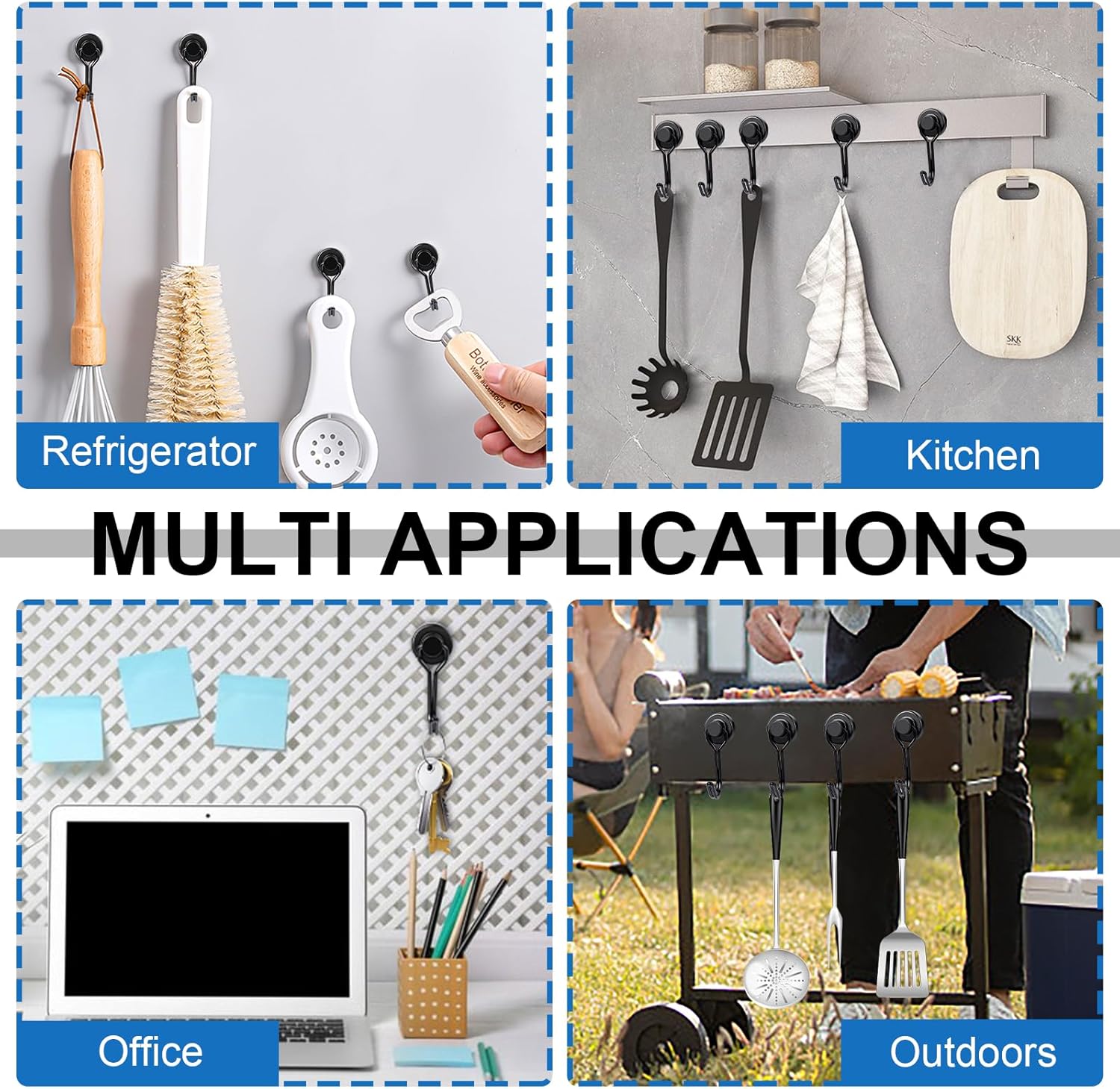 - 【Wide Application】High grade neodymium magnetic hooks for organization, mounting, decorating and storage. Our Powerful magnetic hooks are perfect for home , kitchen , office, garage, cabinets, grill, refrigerator, Cruise and more!
