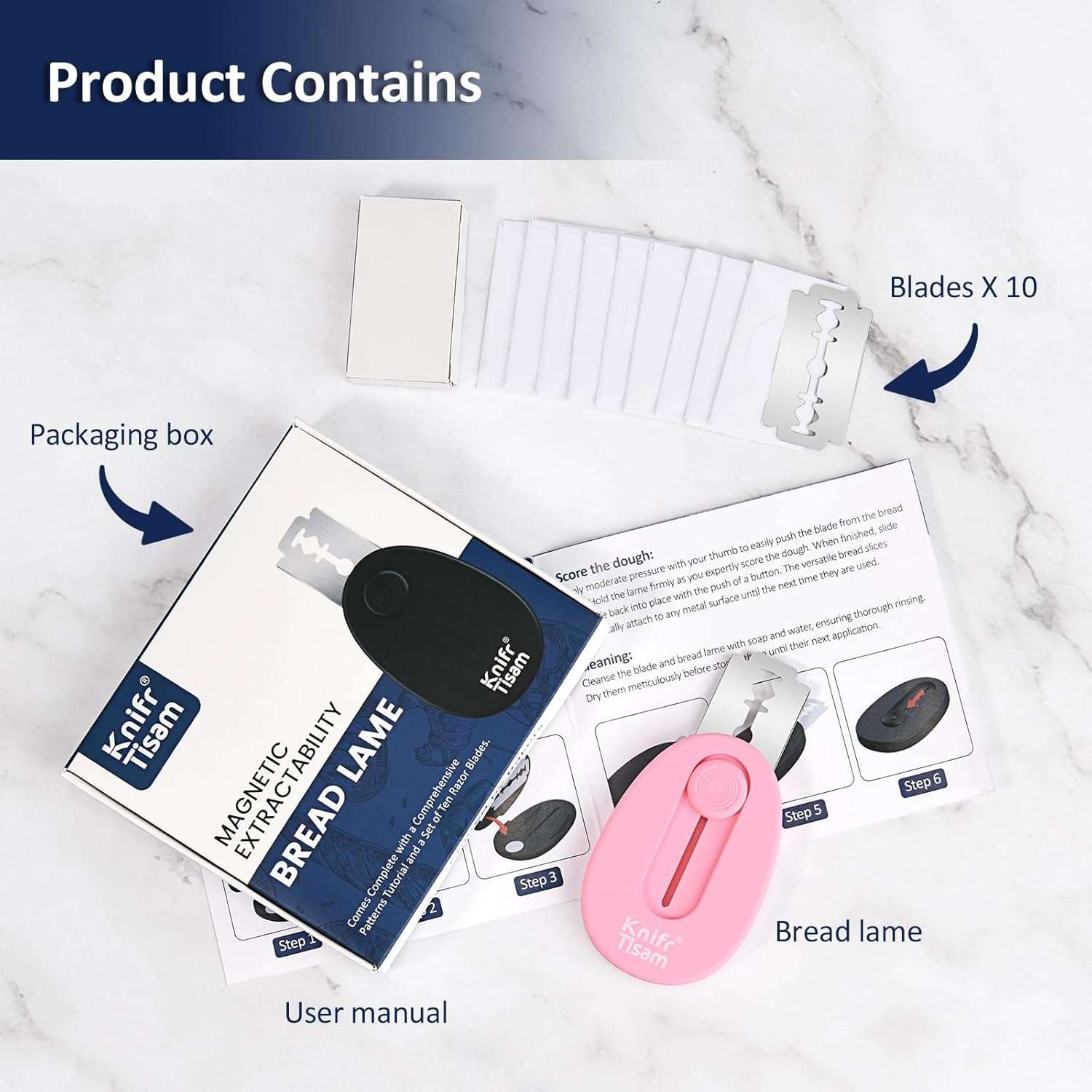 - Safety Design - Extractable & magnetic bread scoring tool for safe & easy dough scoring. Blades are held firmly in place by magnets and slide by a button, so they don't fall out easily.