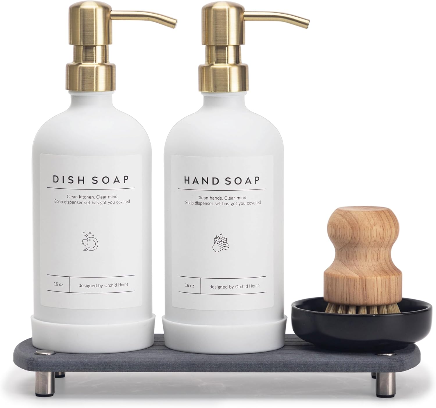 ![[Luxury] Kitchen Soap Dispenser Set - 16OZ White Glass Bottle, Stainless Steel Pump, Instant Dry Tray, Waterproof Labels, Non-Slip Silicone Pad, and Dish Brush | Upgrade for Your Kitchen and Bathroom](http://culinara100.com/cdn/shop/files/616Tlg57gDL._AC.jpg?v=1764300424&width=1445)