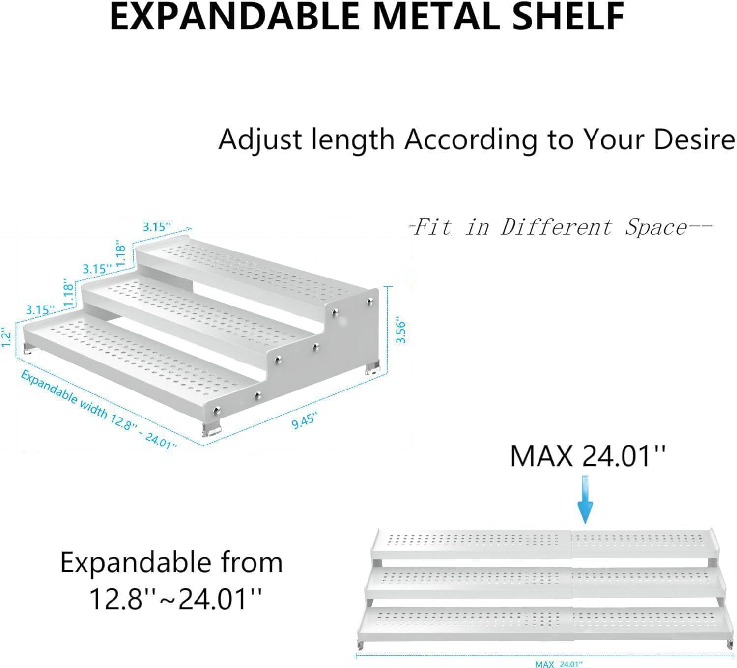 - ⭐[Expandable]The width of spice rack can be expandable from 12.8 to 24.01 inches which can be adjusted according to your needs to effectively utilize your storage space. It is save storage solution for spice jars.