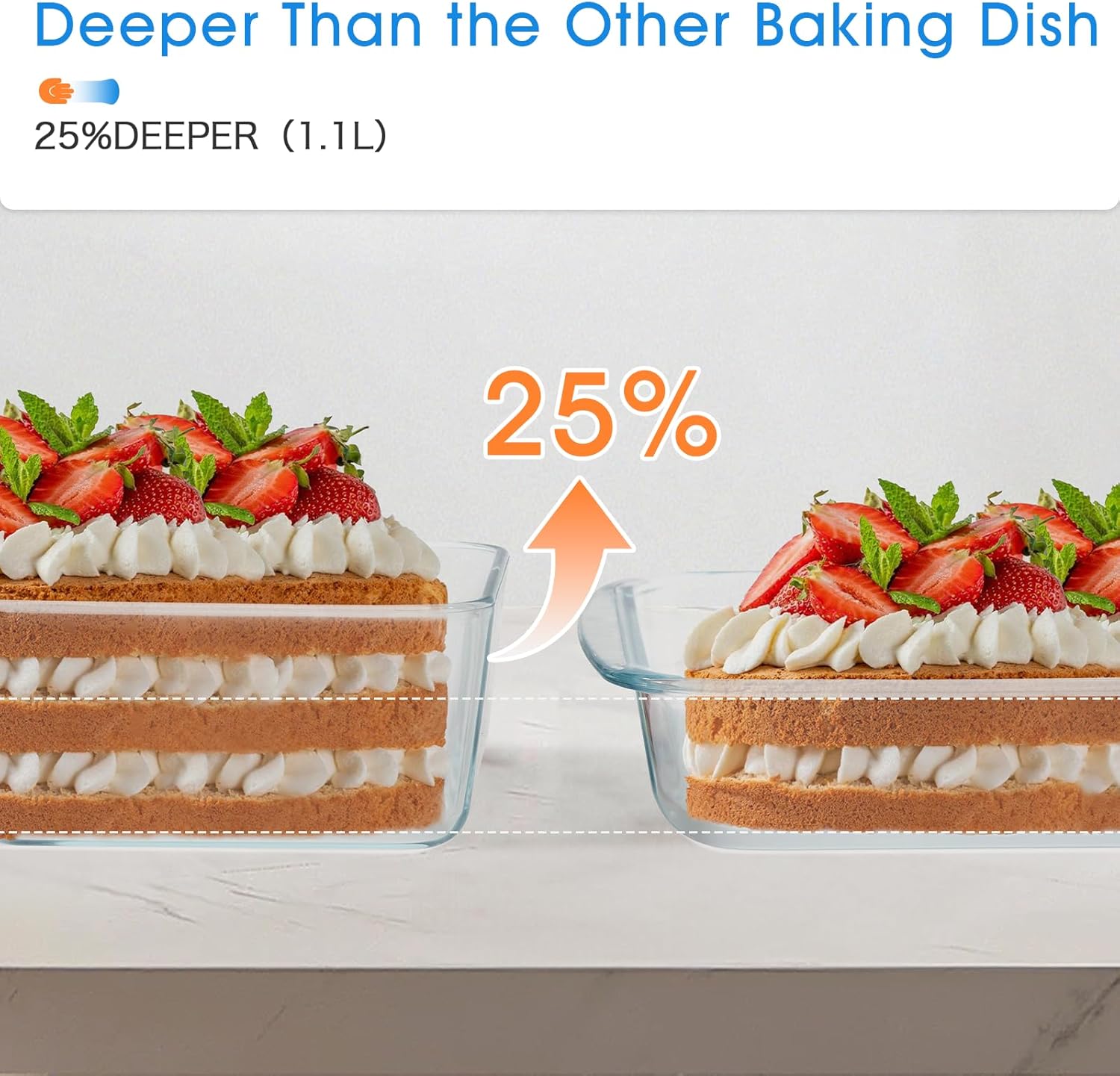- Small Capacity: One serving capacity ( 6×6inch), don't worry about wasting food.Capacity: approx 30 oz ( Normal Capacity ).Suitable for portion control or kids and 25% deeper than the other baking dish.Ideal for fruit cake, lasagna, casseroles, meatloaf, brownies, banana bread, and all your favorite savory or holiday side dishes!