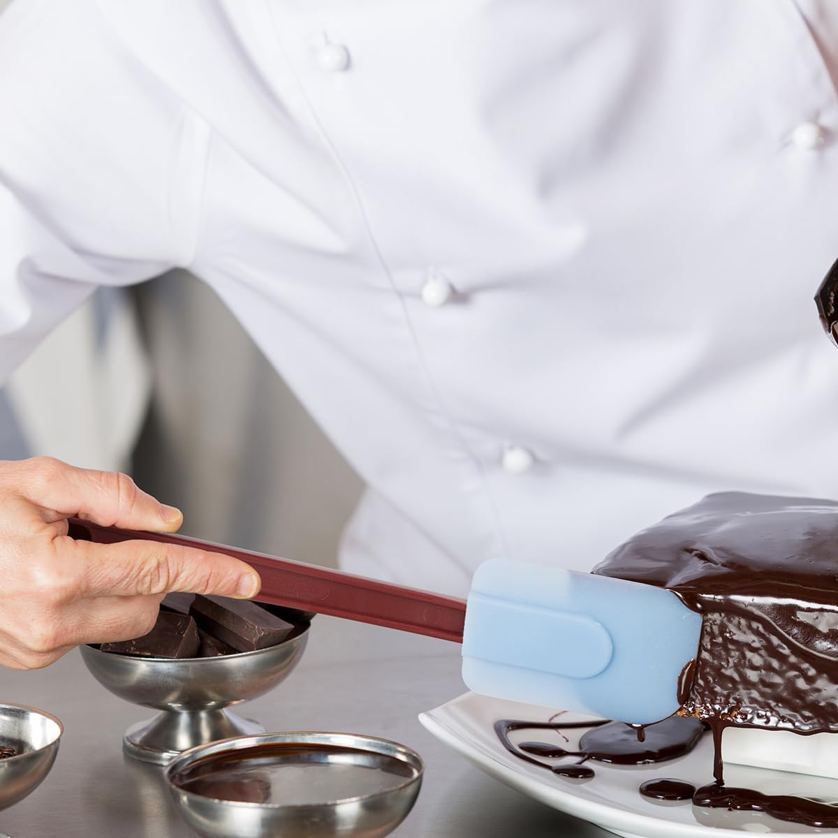 - STURDY & FLEXIBLE: This high heat spatula set, is sturdy to stir sticky dough, and soft on the edges to cleanly scrape batter or button from your bowl; Edges of these rubber spatulas are thin and flexible, working fine at scraping, perfect to reach the bottom of mixer bowls (which have high sides) without getting your hands sticky. Gentle but durable and strong, these commercial grade rubber spatulas can serve for years with no need for special care.