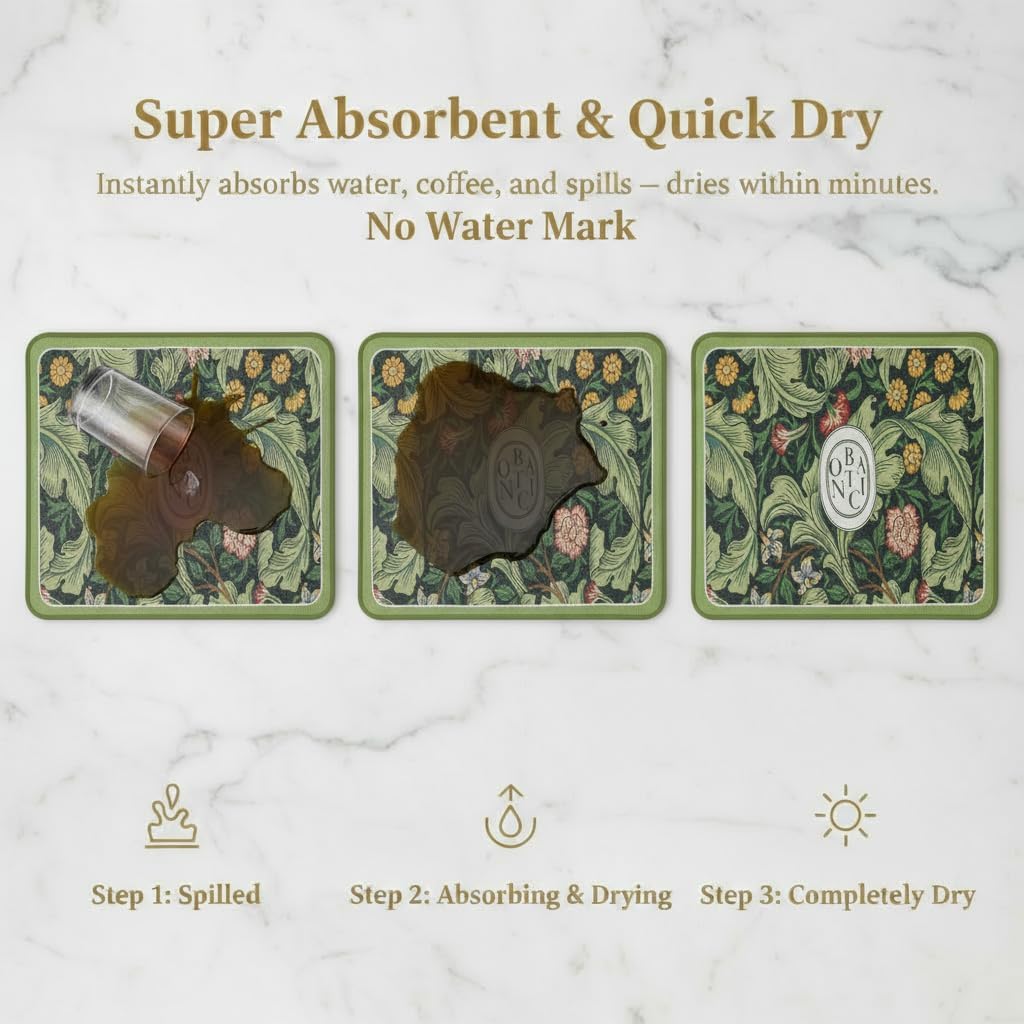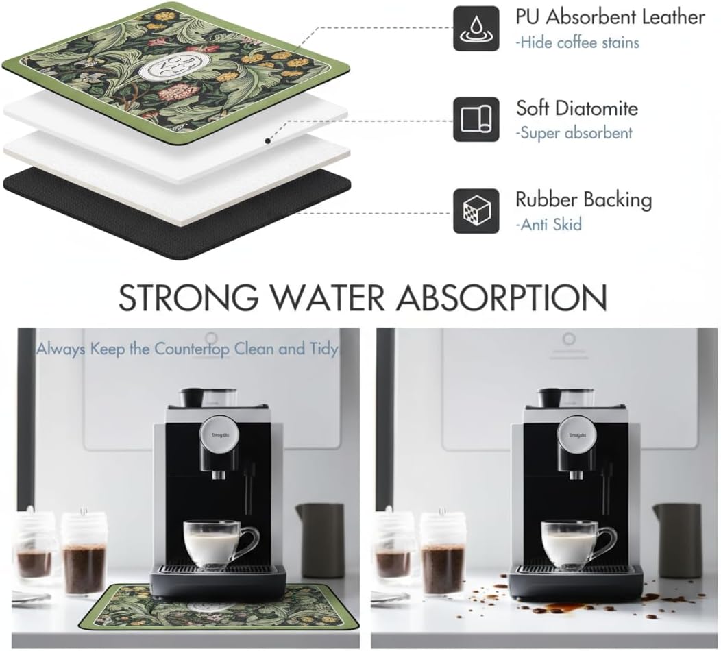 Dish Drying Mat Super Absorbent – 16" x 18" Coffee Mat for Countertops – Non-Slip Drying Mat for Kitchen Counter – Easy to Clean Water Absorbent Mat – Quick Dry Dish Mats (Green Flowers)