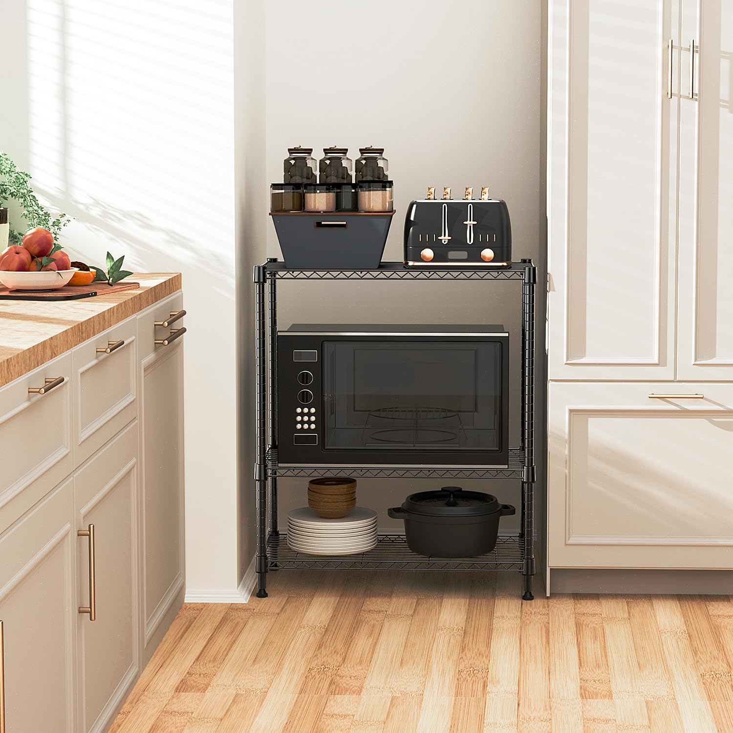 - IMPACT & SPACE-SAVING: This storage shelf is exquisitely designed to maximize efficiency in small spaces. Its multiple wire shelves provide ample vertical storage capacity, making it an ideal choice for narrow areas or corners.