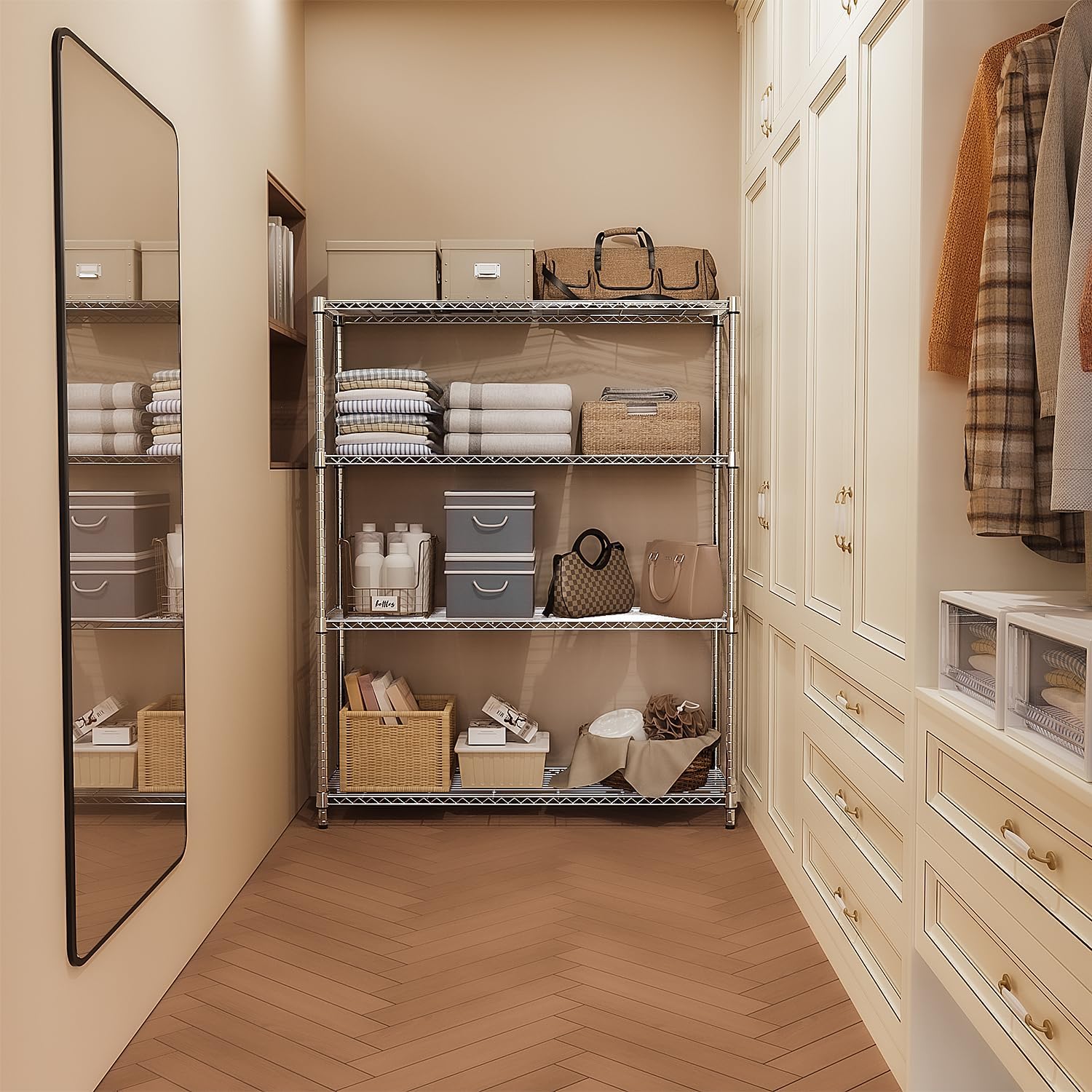 5-Shelf Storage Shelves,Wire Shelving Heavy Duty Metal Storage Shelving Unit Adjustable Garage Shelving Rack Pantry Kitchen (Chrome, 4 Tier,15.8" D x 45.3" W x 59.4" H)