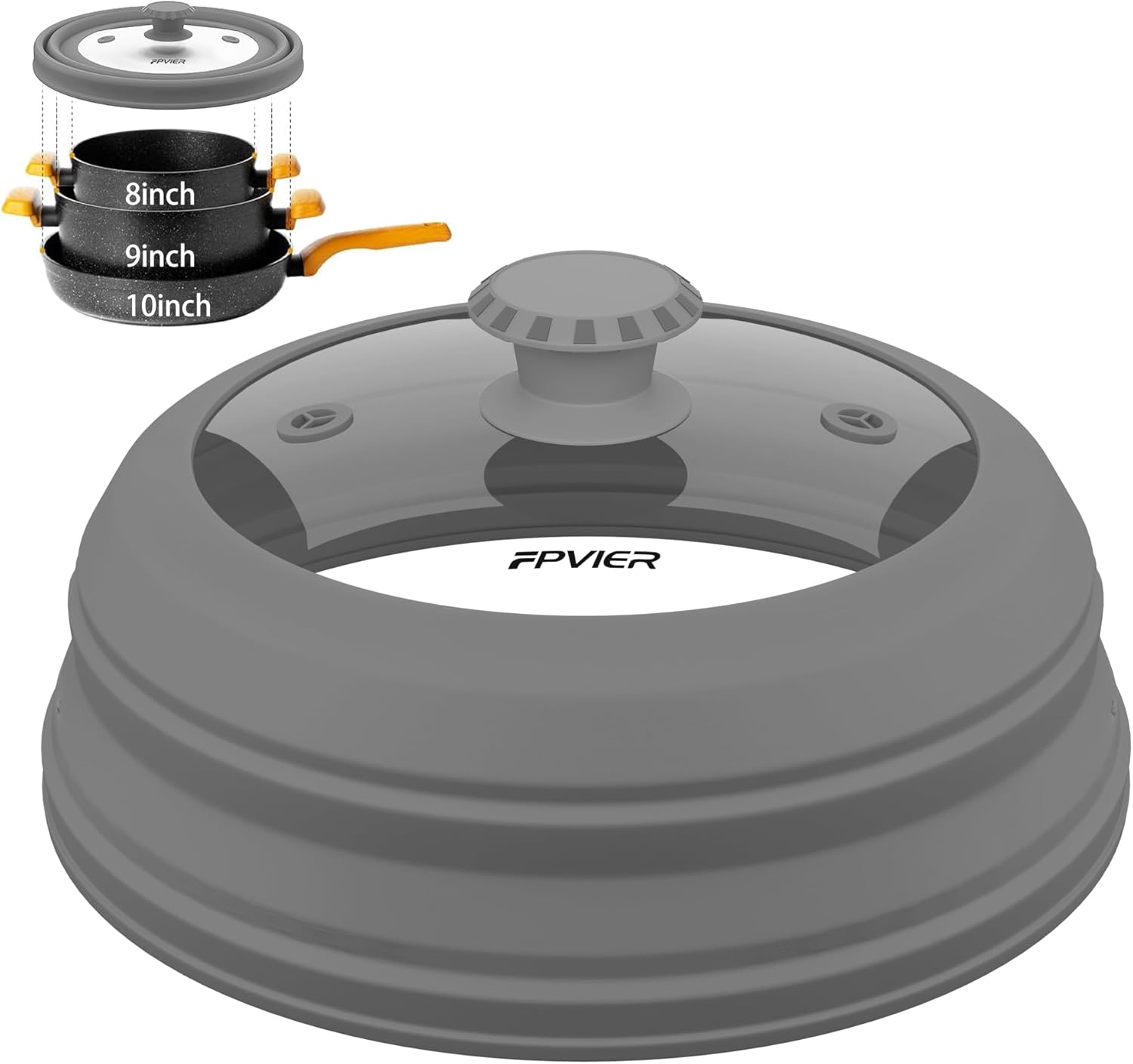 - 【Patent Collapsible Design】Experience the excellence with FPVIER's Patent Collapsible Silicone Dome, the diameter is 10.8 inch (27.43 cm), uniquely crafted to cover plates & bowls from 6"-10" with ease, providing a big surprise in the compact storage form.