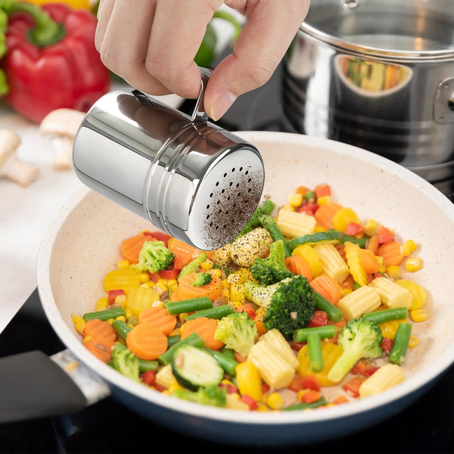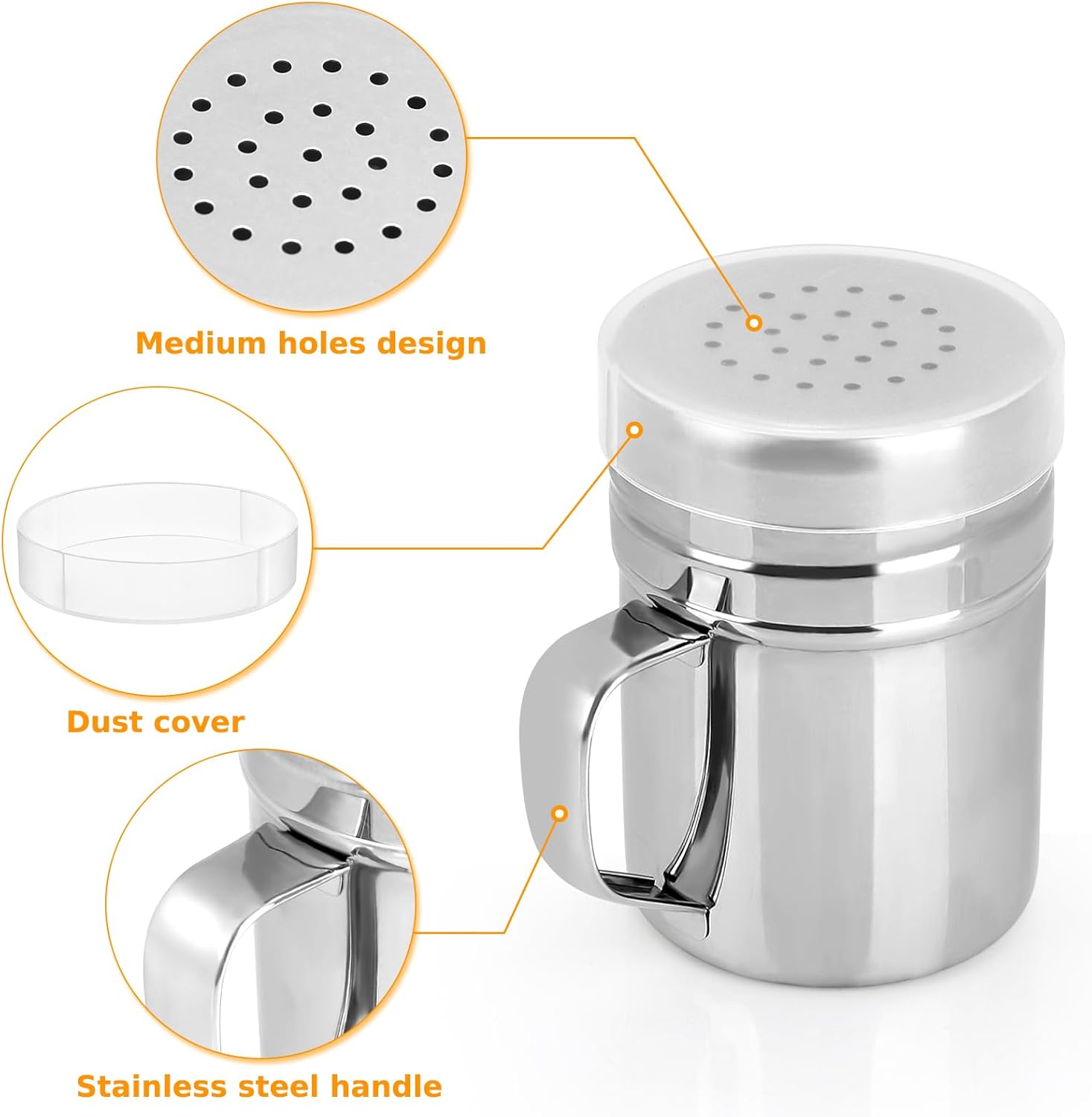 Accmor 2pcs Stainless Steel Dredge, Salt Pepper Dredge Shakers with Handle, Seasonings Spice Shakers with Lid, 6 Ounce