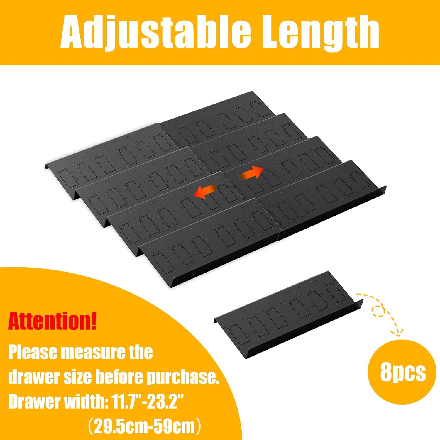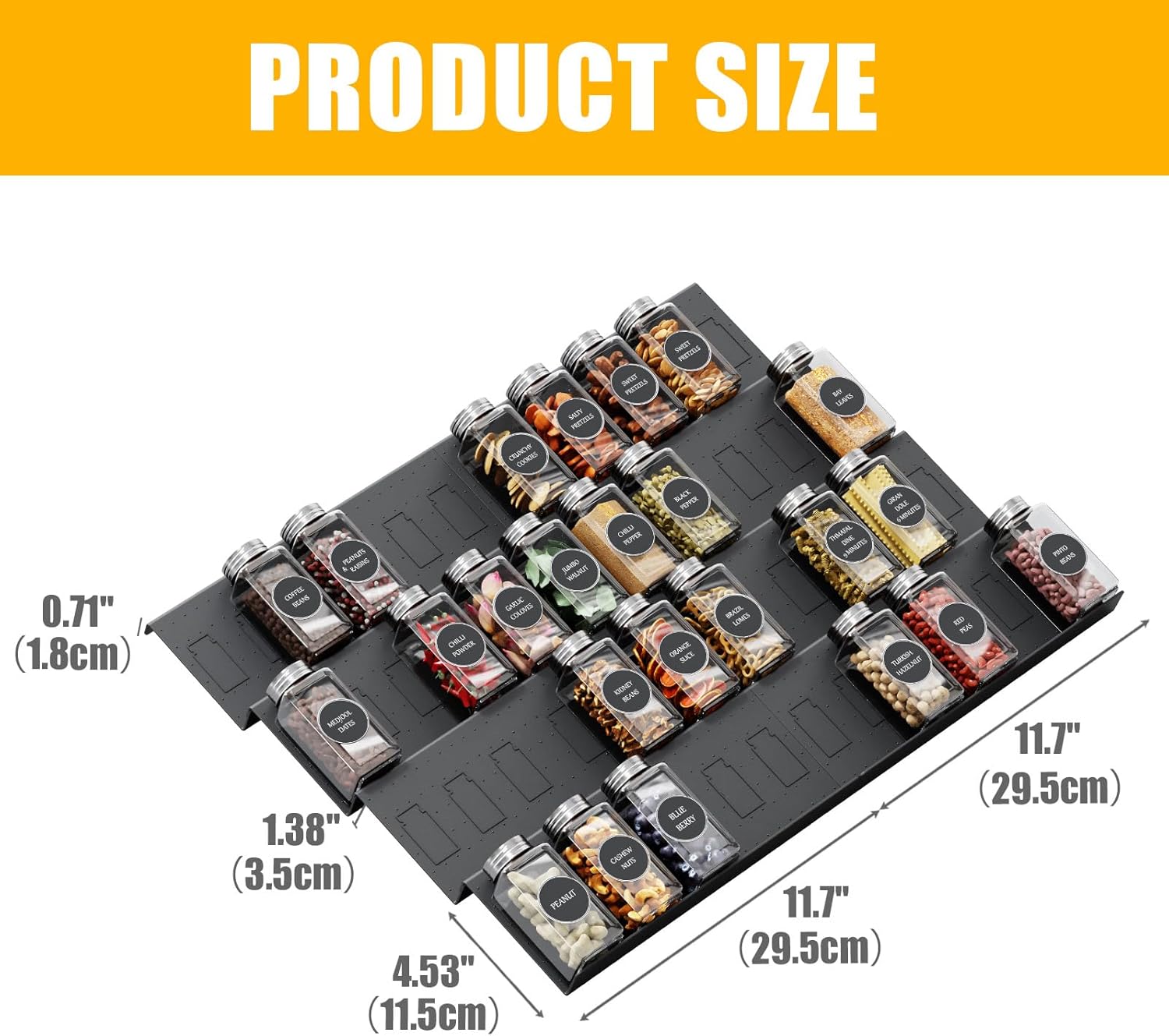 - Expandable and Overlapping: Seasoning drawer organizer can extend from 11.7" to 23.2". Adjustable spice rack organizer for drawer compatible with most kitchen drawers . Please measure your drawer before purchasing to ensure this spice organization for drawer suits your needs.