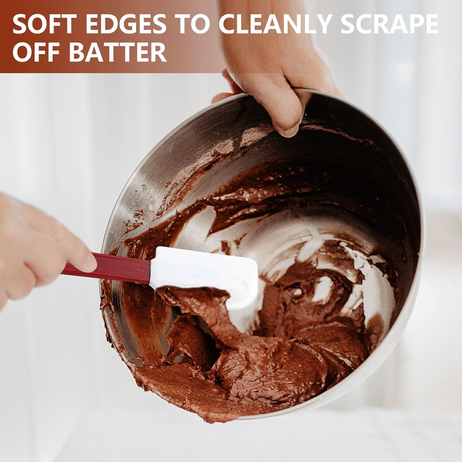 - Sturdy and Flexible: these reusable silicone scraper spatulas come with delicately designed curves and proper rigidity, which can conform to the cookware sides for effective scraping but will not bring scratches to your pads or bowls; The silicone heads can help you deal with nooks and crannies with ease