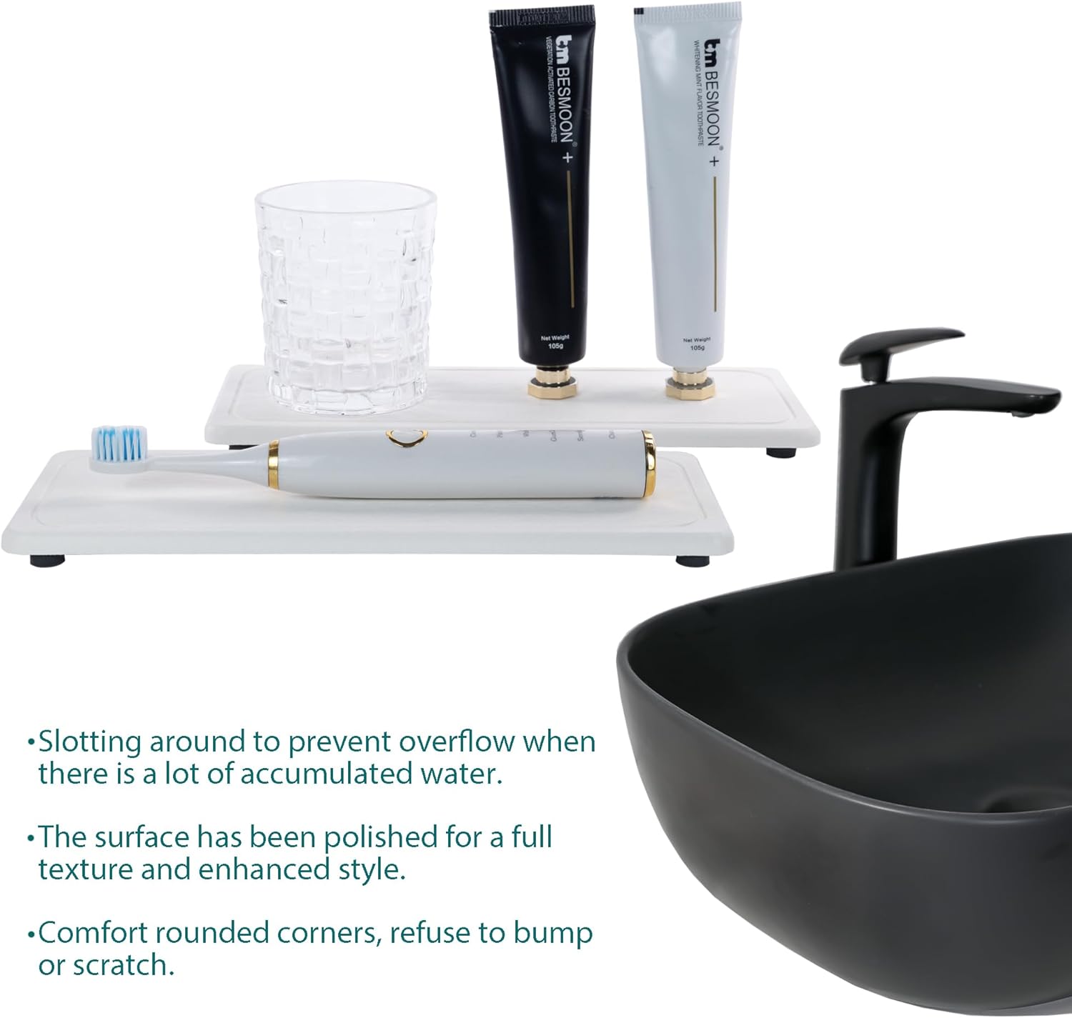 - Perfect Design Created for the Modern Home, to make life clean, comfortable and orderly. Made from natural Diatom mud and plant fiber, small holes within diatomite enable it have amazing water absorption. They could absorb water and gets dry in a few minutes. It makes the Bathroom Counter top more dry and tidy.