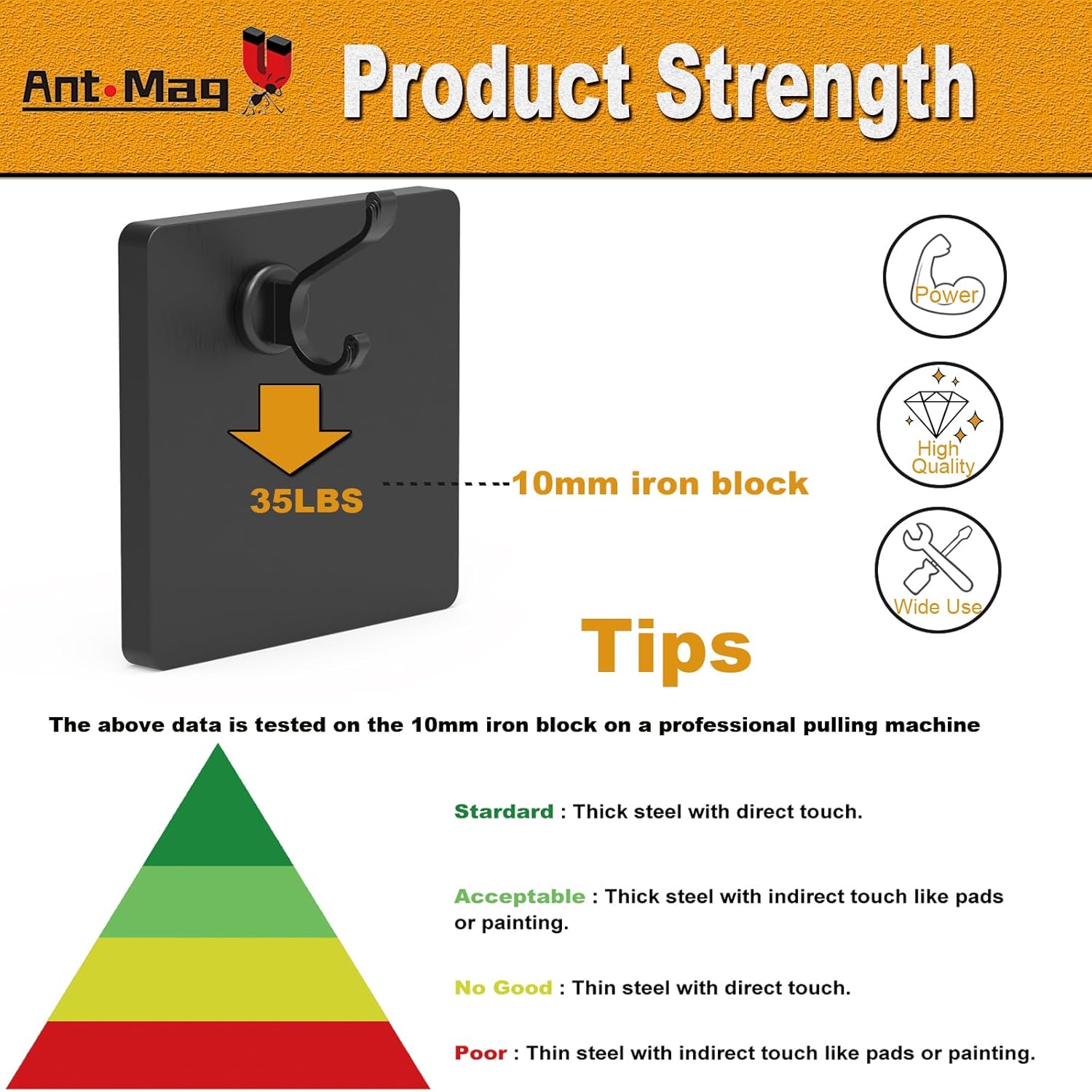 - 【EASY INSTALLATION】 It is easy to use the magnet hook onto the magnetic iron surface. No drilling holes, no sticky residue, no tools required, Ant Mag magnetic strong hooks can protect your surfaces of objects from being scratched and damaged.