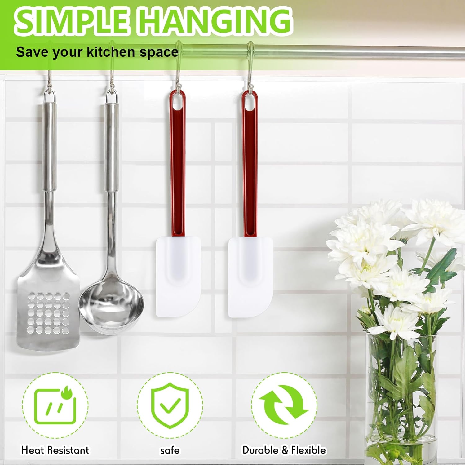 - Heavy Duty and Long Handle: our long handle spatulas are flexible for most heavy duty task, making it easy to mix even the thickest dough and mixtures; The long handle is thick and comfortable to hold, saving you energy in the kitchen