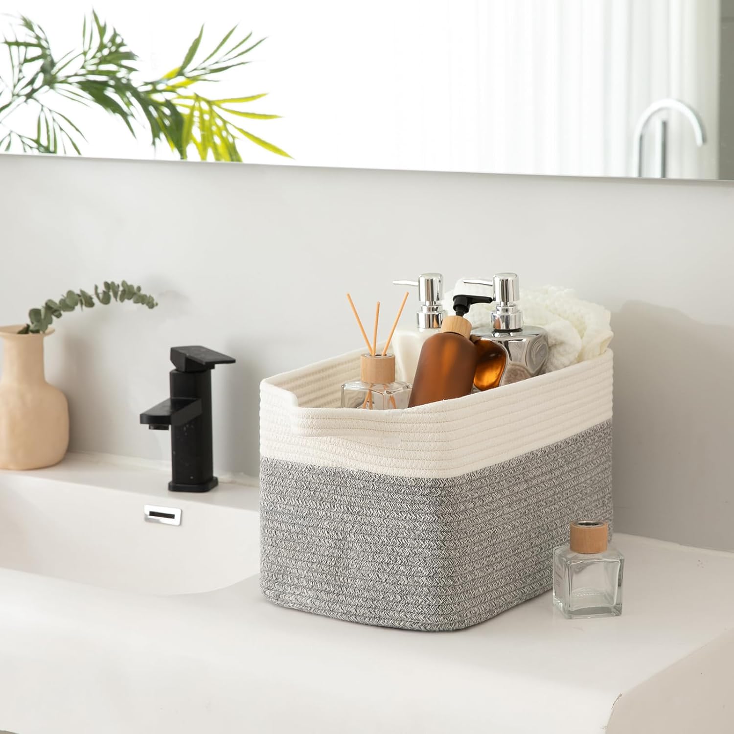 OIAHOMY 3 Pack Storage Basket for Organizing, 13''X9.85''X8.7'' Storage Bins,Woven Basket Basket with Handles, Toy Storage Basket Bin,Stylish Room Decor Basket, White & Grey variegated