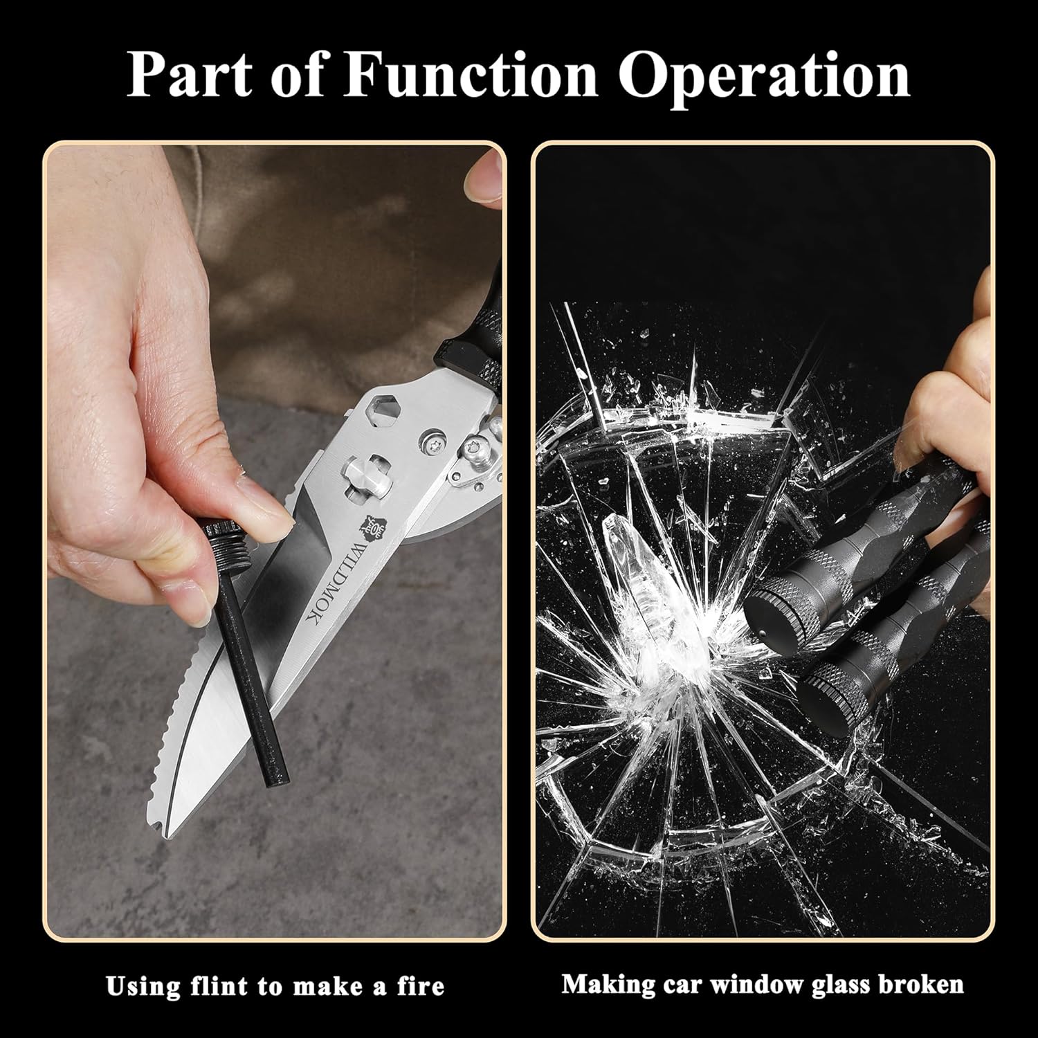 - 【Multifunctional and Widely Applicable】Not only can it process ingredients such as chicken bones, fish bones, meat, fruits, but also has functions such as hook remover, wire cutter, flint, compass, car glass blaster. very suitable for outdoor camp etc. Keeping a pair of our outdoor scissors in your car is also a good option.