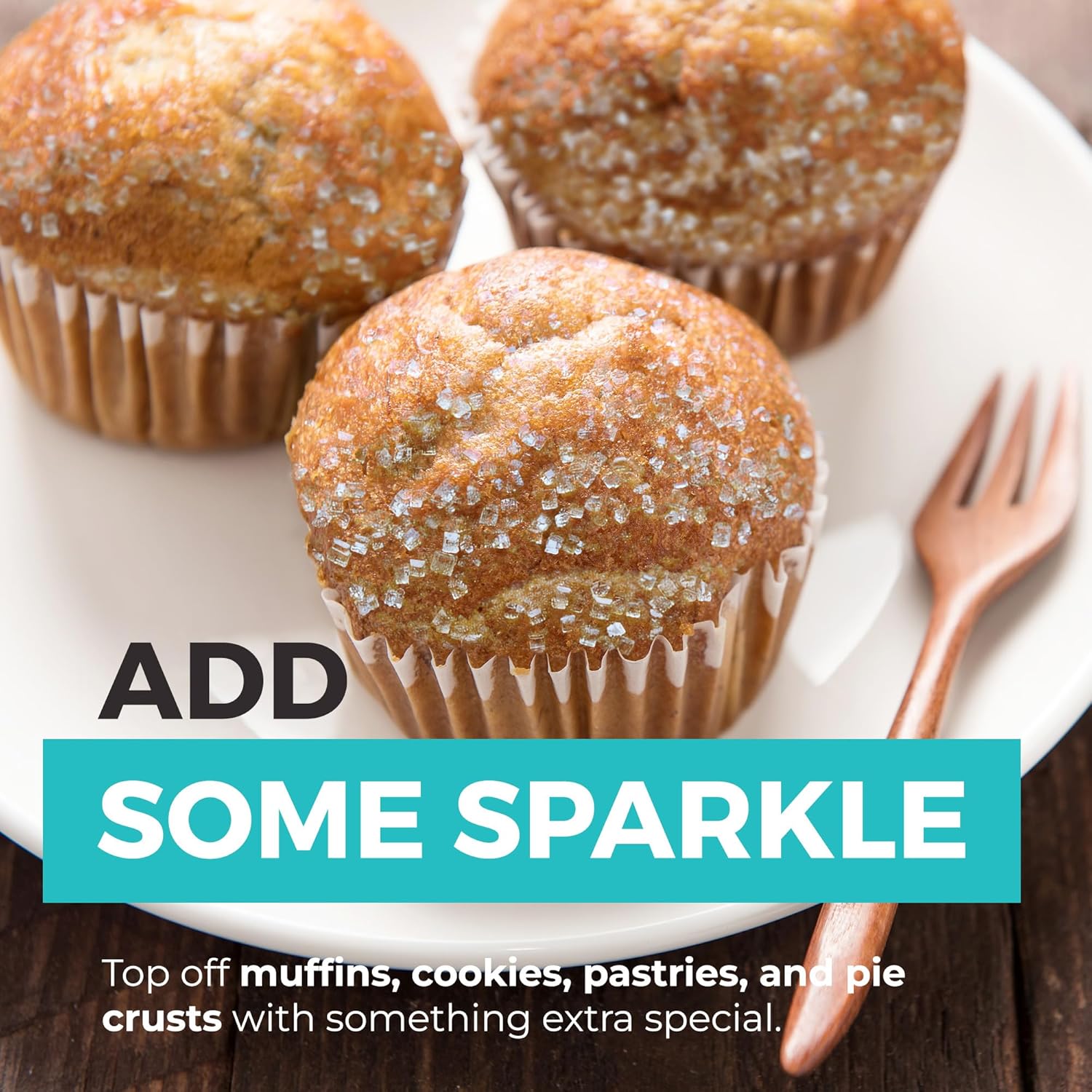 - ADD A LITTLE SPARKLE: White sparkling coarse sugar for baking brings back the luster your baked goods have been lacking! Sprinkle coarse sugar crystals atop all your favorite recipes to give them the glittery glow you didn’t know they needed. Blueberry muffins, sugar cookies, and scones all shimmer and shine like never before. Use just a pinch for topping added shimmer to muffin tops or sprinkle liberally to add crunch to your crusts.