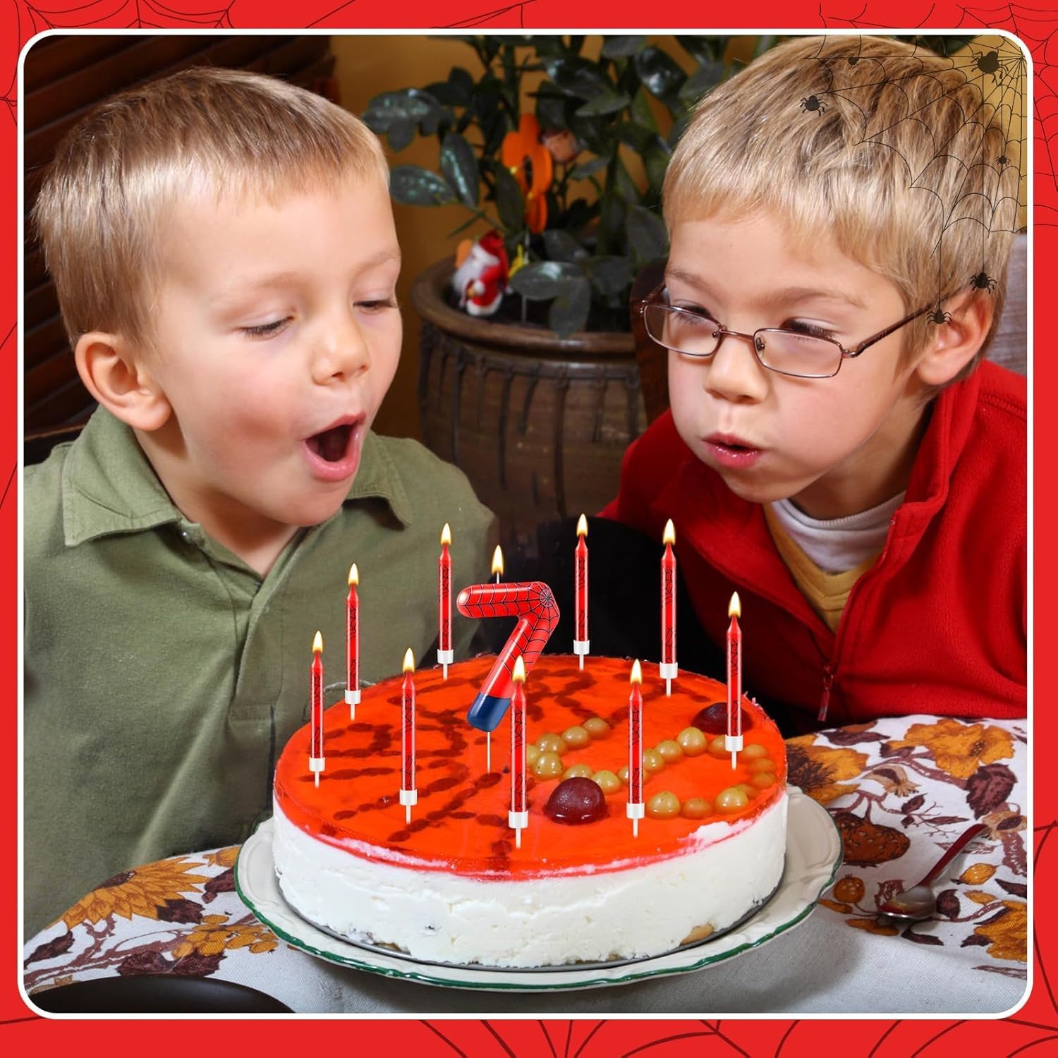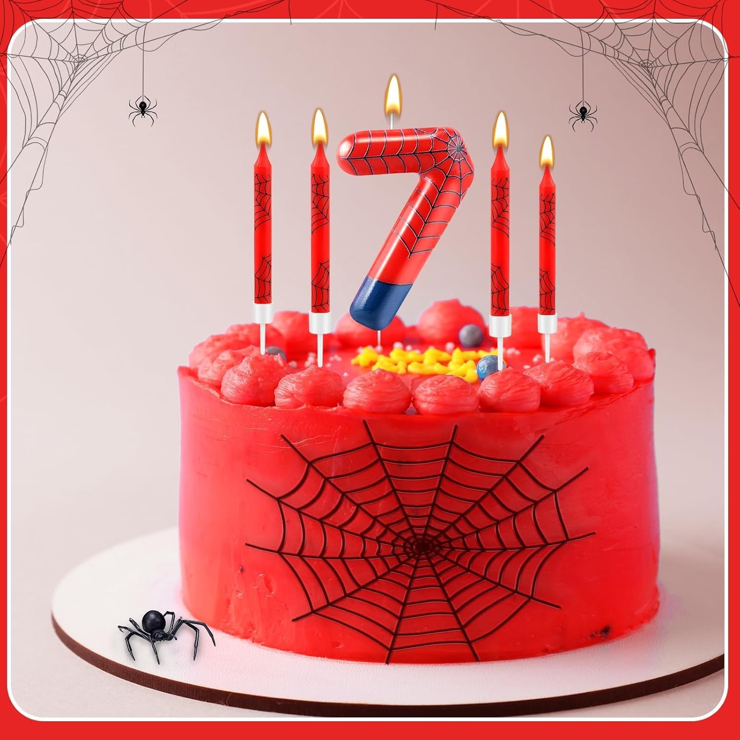 - The Package Includes: You will receive 12 red spider themed birthday candles and 1 number 7 candle, enough for all kinds of party celebrations and everyday use to create a fantastic birthday cake, note: the product may have a color difference, but it does not affect use, the candle will slowly melt as it burns, and it is recommended not to leave it on the cake for more than two minutes
