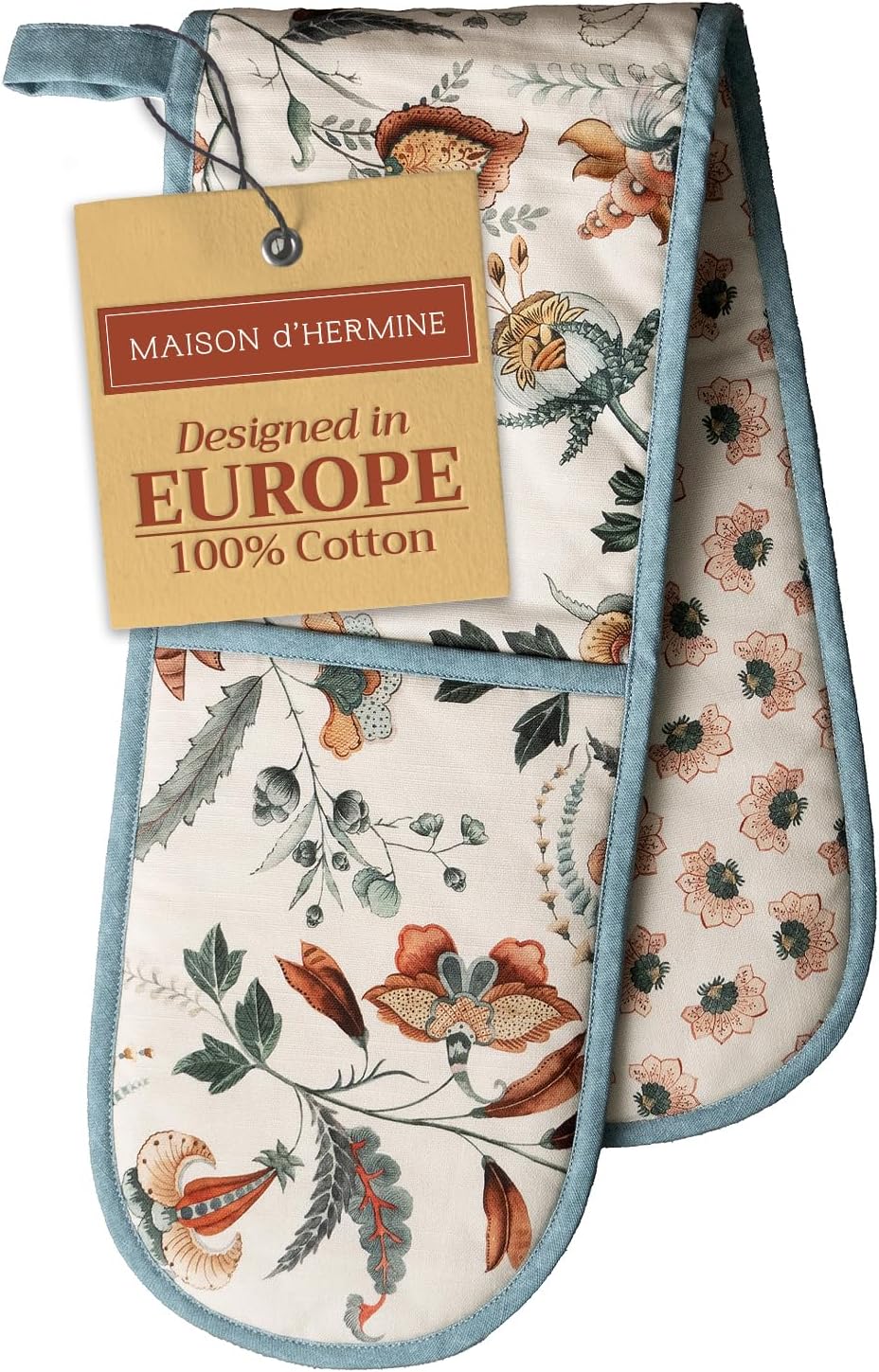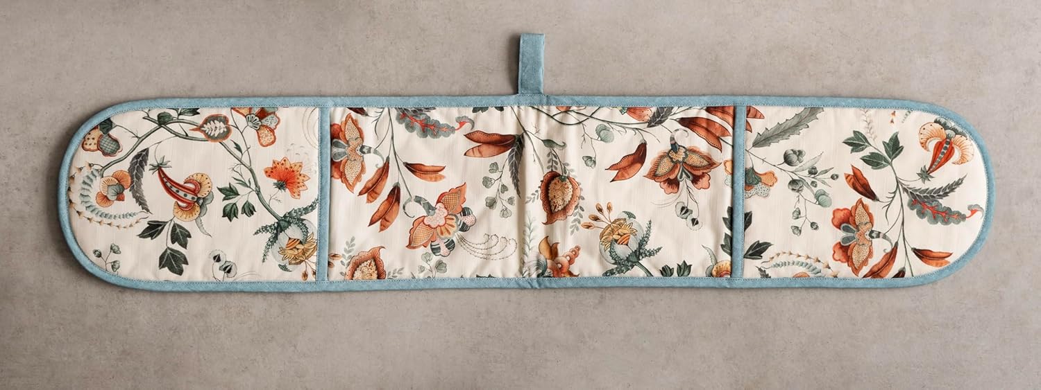 - Package includes: Includes 1 double oven mitt sized 7"x35". Perfect for handling hot cookware safely while adding a touch of European elegance to your kitchen. Designed in Europe and made in India with care