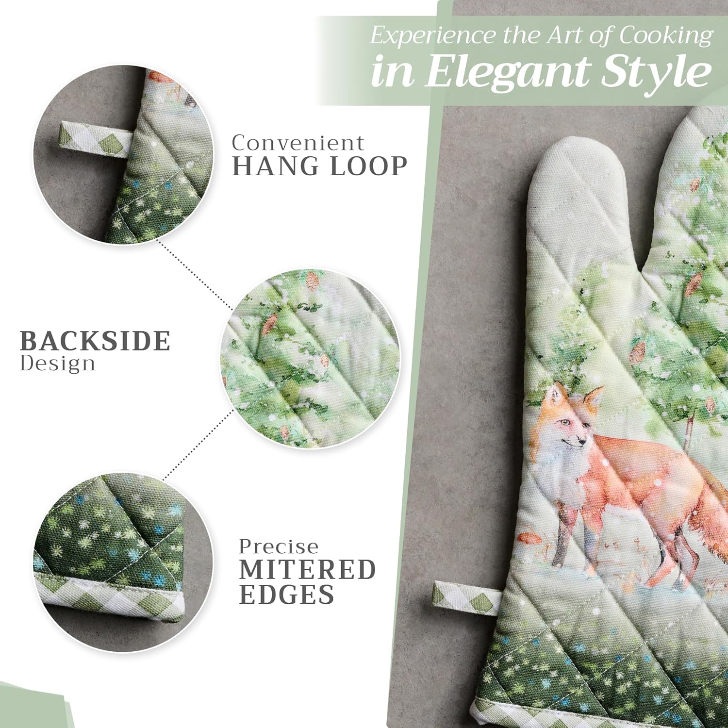 Maison d' Hermine Oven Gloves 100% Cotton Oven Mitt 7" x 13" with Loop Heat Resistant, BBQ, Cooking Gloves, Baking, Grilling, Kitchen, Handling Hot Pans (Pack of 1, Winter Mornings)