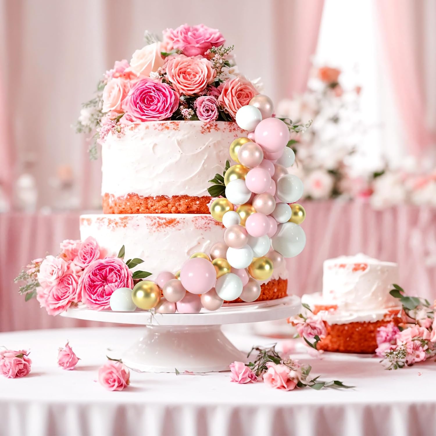 - Package Includes: You will get 48 pcs cake balls decorations in 4 colors and 10 butterflies cake decoration, including rose gold, pink, white and gold. 12 pieces of each color. The quantity of each sizes and colors included in each set are as shown in the picture