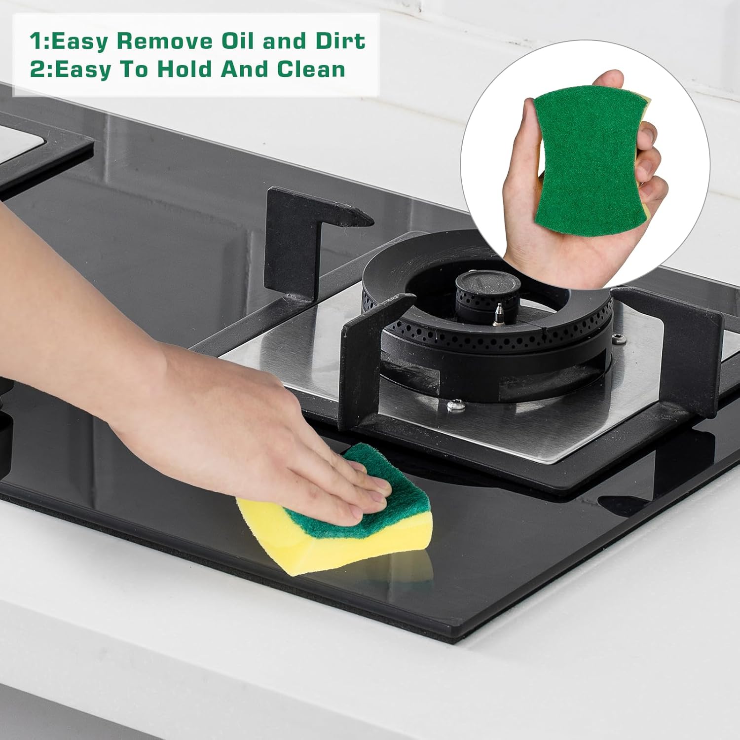 - 【Powerful cleaning】: The scratch-free soft yellow sponge surface has good water absorption, and the high-quality green scrubbing pad on one side is designed to effortlessly remove oil and burnt food.