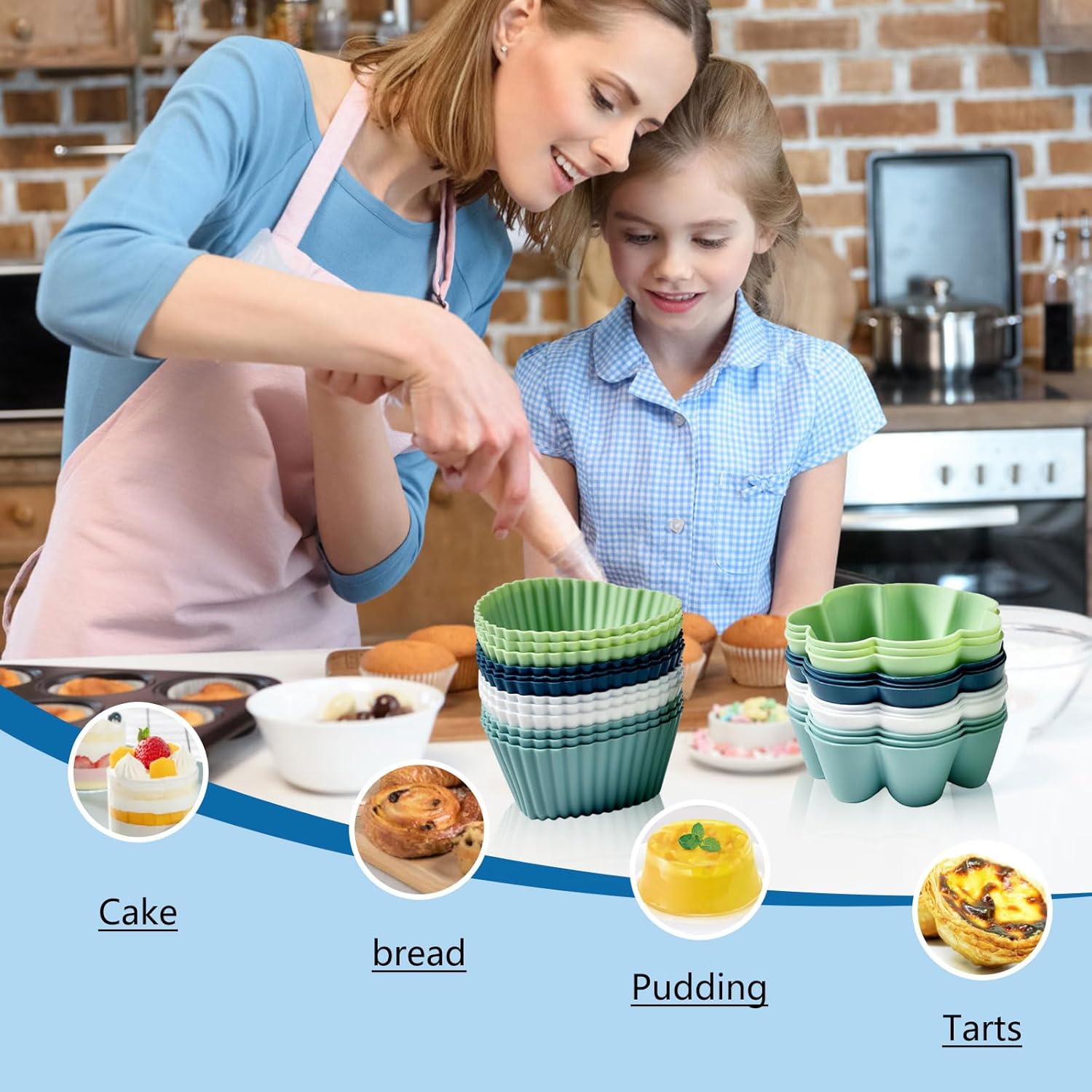 - Non-stick & Baking Easy: Comparing to paper cake cups, silicone baking cups more easy to store, easily place and get out baked goods easily with good shapes, made with non stick material, very easy to clean with water or dishwasher, also you can add grease or cooking spray for non stick.