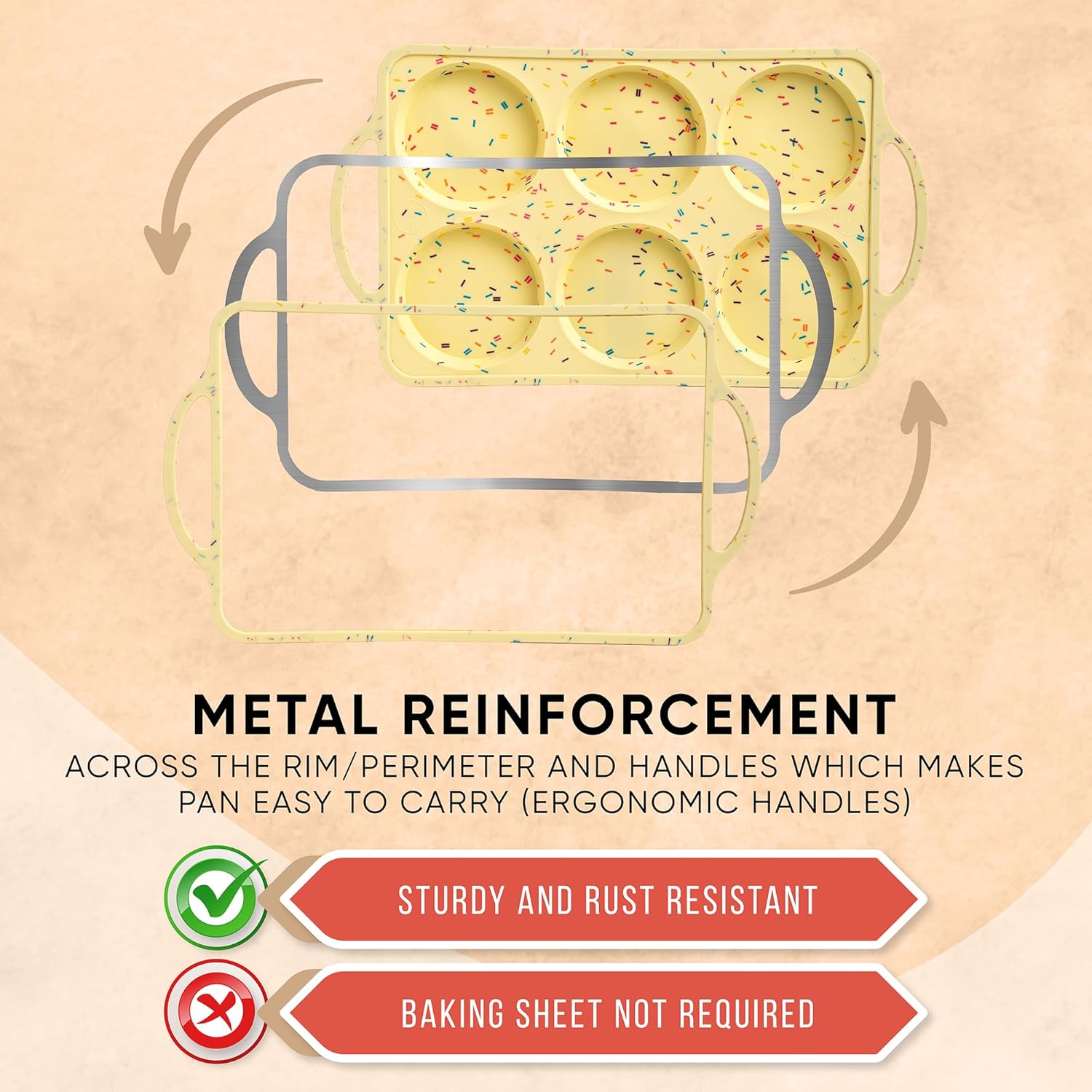Jumbo Top Silicone Muffin Pans for Baking- 2 PACK Silicone Jumbo Muffin Pan 6 Cup -Baking Cupcake Pans, Make Perfect Muffin Top Pans Non Stick, Drop Cookies or Whoopie Pie Shells - CONFETTI
