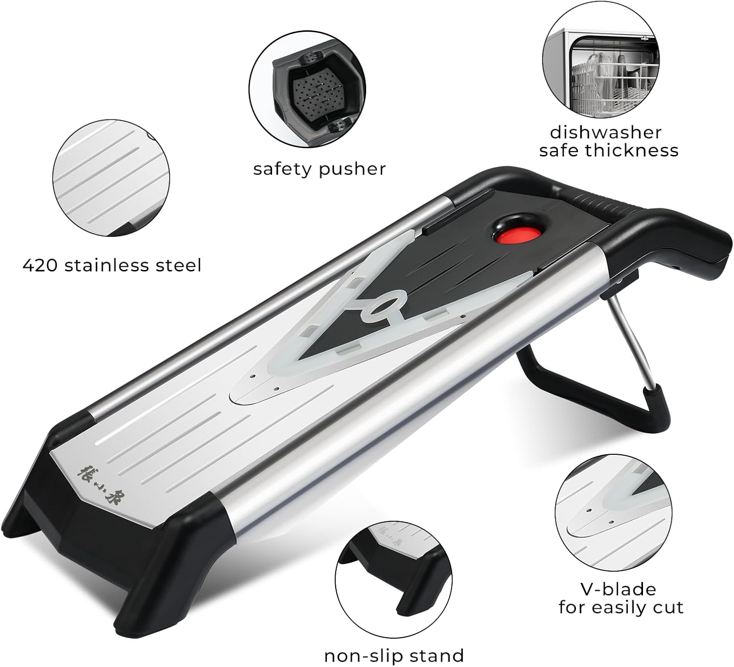 ZHANG XIAO QUAN SINCE 1628 Mandoline Slicer for Kitchen, Vegetable Chopper Stainless Steel Food Slicer Veggie Slicer Onion French Fry Cutter Potato Julienne, 5 Blades, Kitchen Utensils