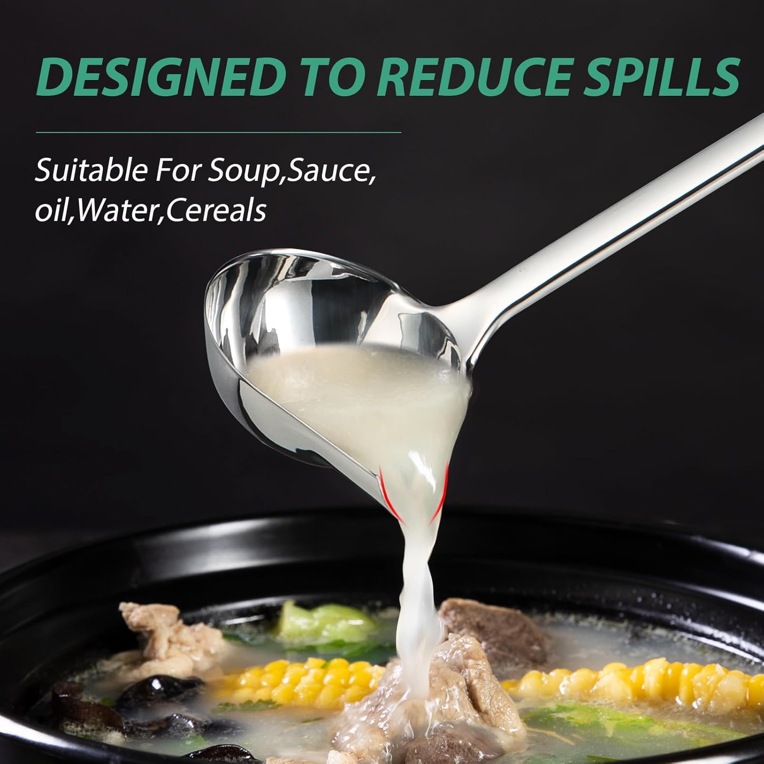 - 【FOOD-GRADE MATERIAL】Made of food-grade stainless steel, the kitchen ladle can come into contact with food or soups for a long time. We believe that safe materials are essential for safe use