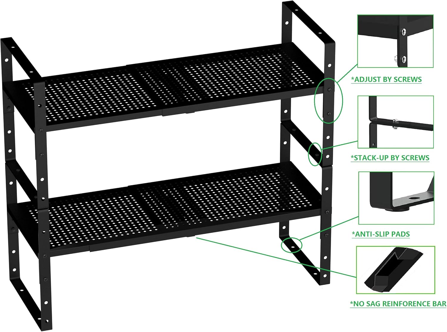Expandable Shoe Rack Stackable Metal Pantry Storage Shelves Stand Adjustable Height Cabinet Shelf Organizer Racks Spice Shelving(3PACKS/BLACK,LARGE)