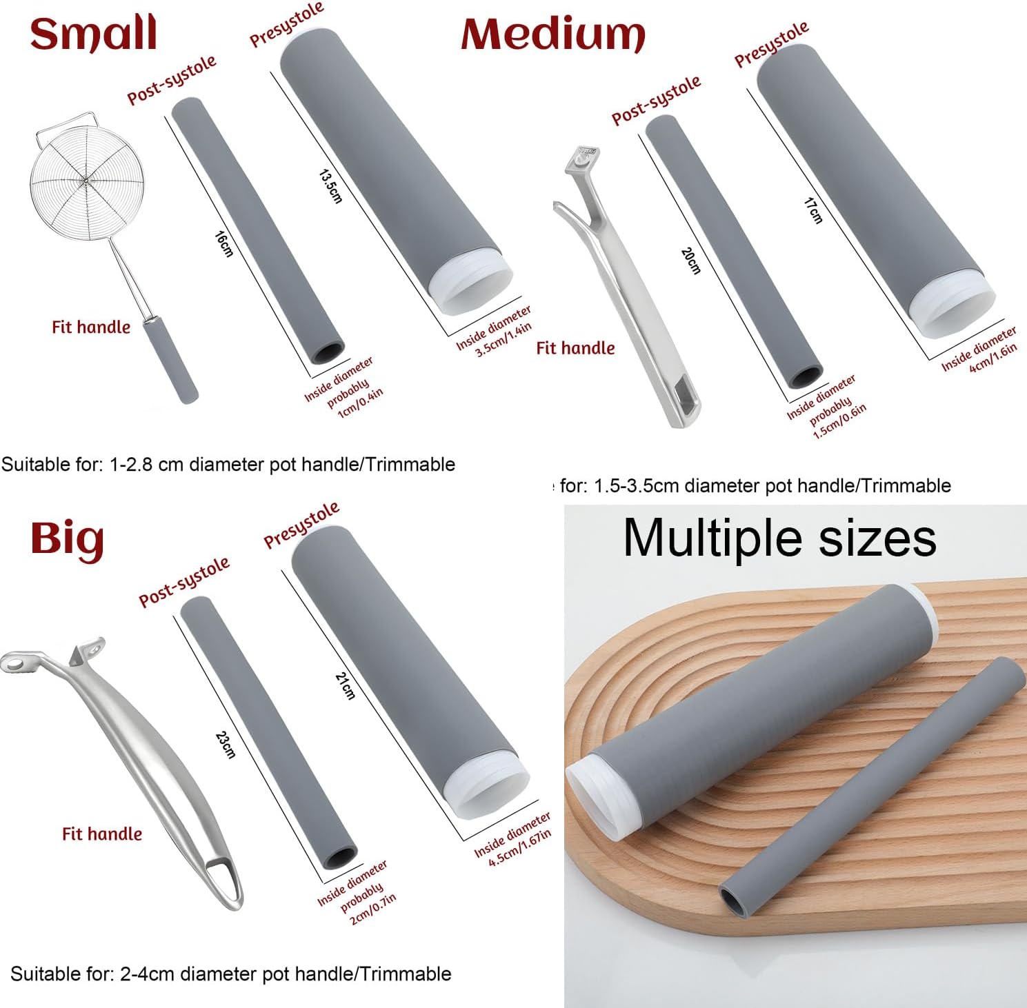 - โฌ๐ฃ๐ฒ๐ฟ๐ณ๐ฒ๐ฐ๐ ๐๐ถ๐๏ผOur silicone pot handle covers will automatically shrink to fit various irregularly shaped handles. You no longer have to worry about the pot handle cover falling off inappropriately and affecting use. It completely protects your kitchen utensil handles and effectively prevents Scald for peace of mind when cooking.๏ผNote: Stretch in the direction indicated by the arrow๏ผ