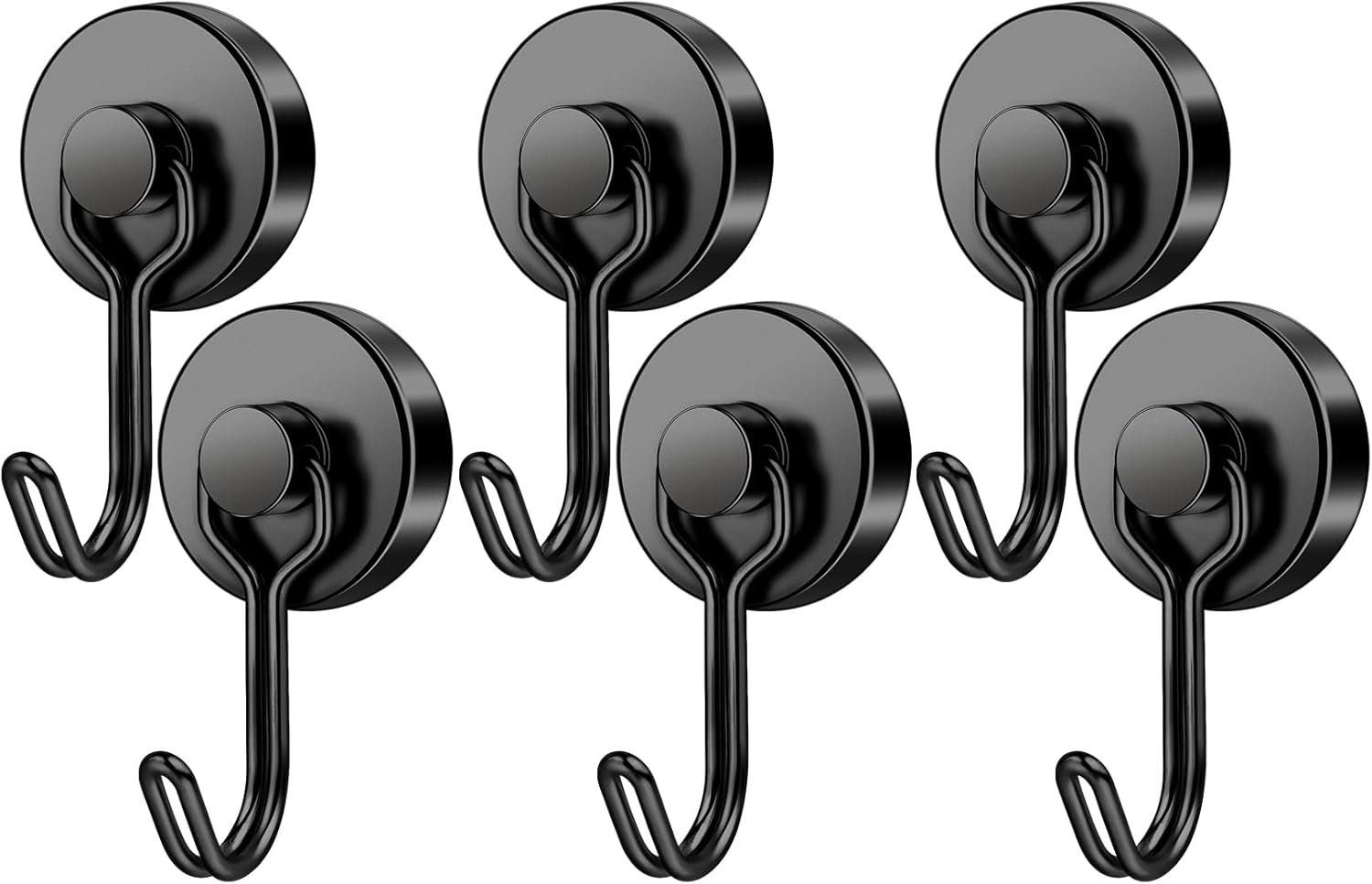 FINDMAG Black Magnetic Hooks, 60 LB+ Magnetic Hooks Heavy Duty 2025 Cruise Ship Essentials, Stong Neodymium Magnet Hooks for Refrigerator, Workplace, Curtain, Locker Accessories, Home - 6 Pack