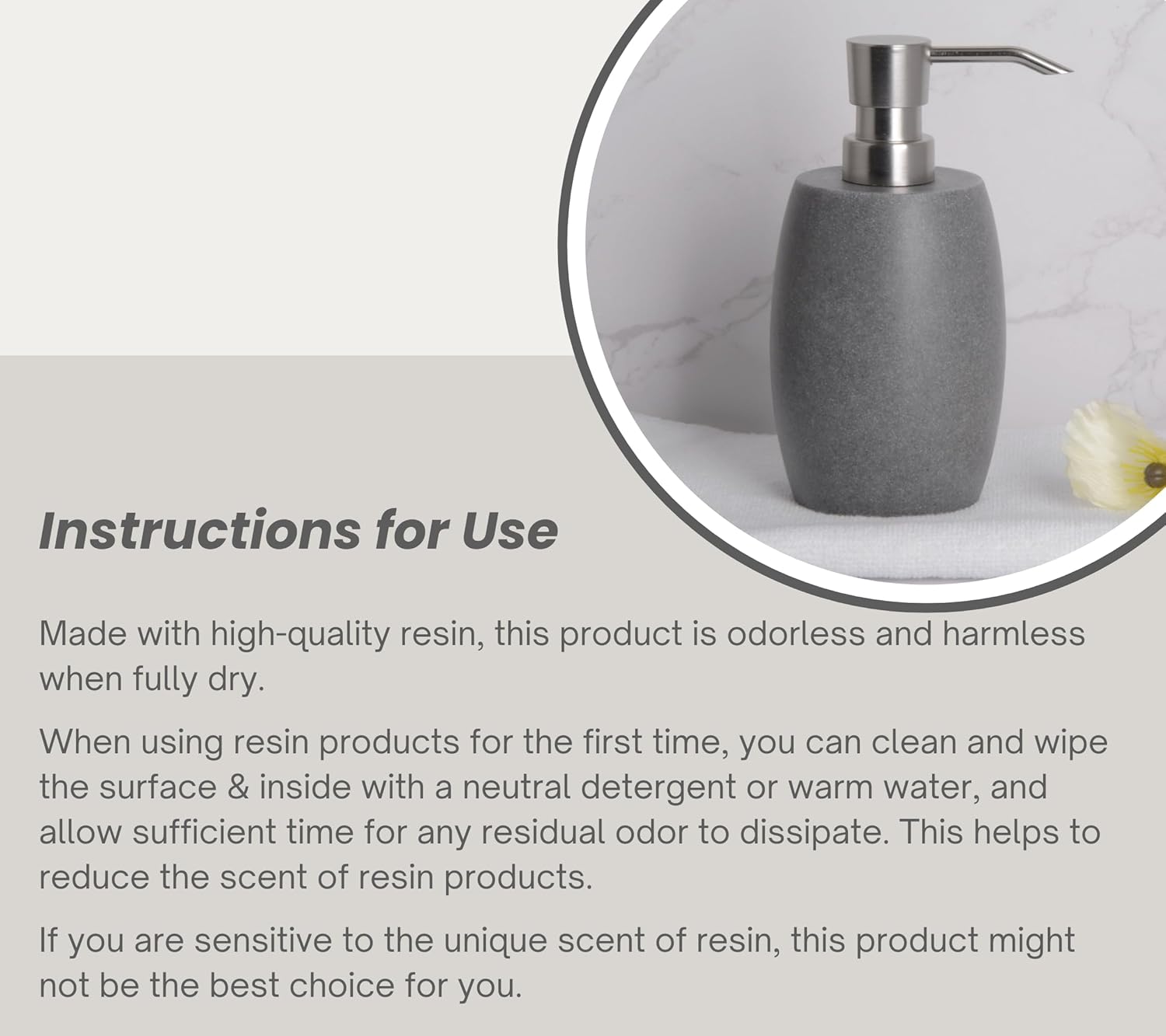 - 【CARE INSTRUCTIONS】To maintain your soap pump dispenser's longevity, gently clean with a damp cloth or rinse with water. Avoid rough cleaning products that could damage the surface and protect it from direct sunlight to preserve its aesthetic appeal and functionality.