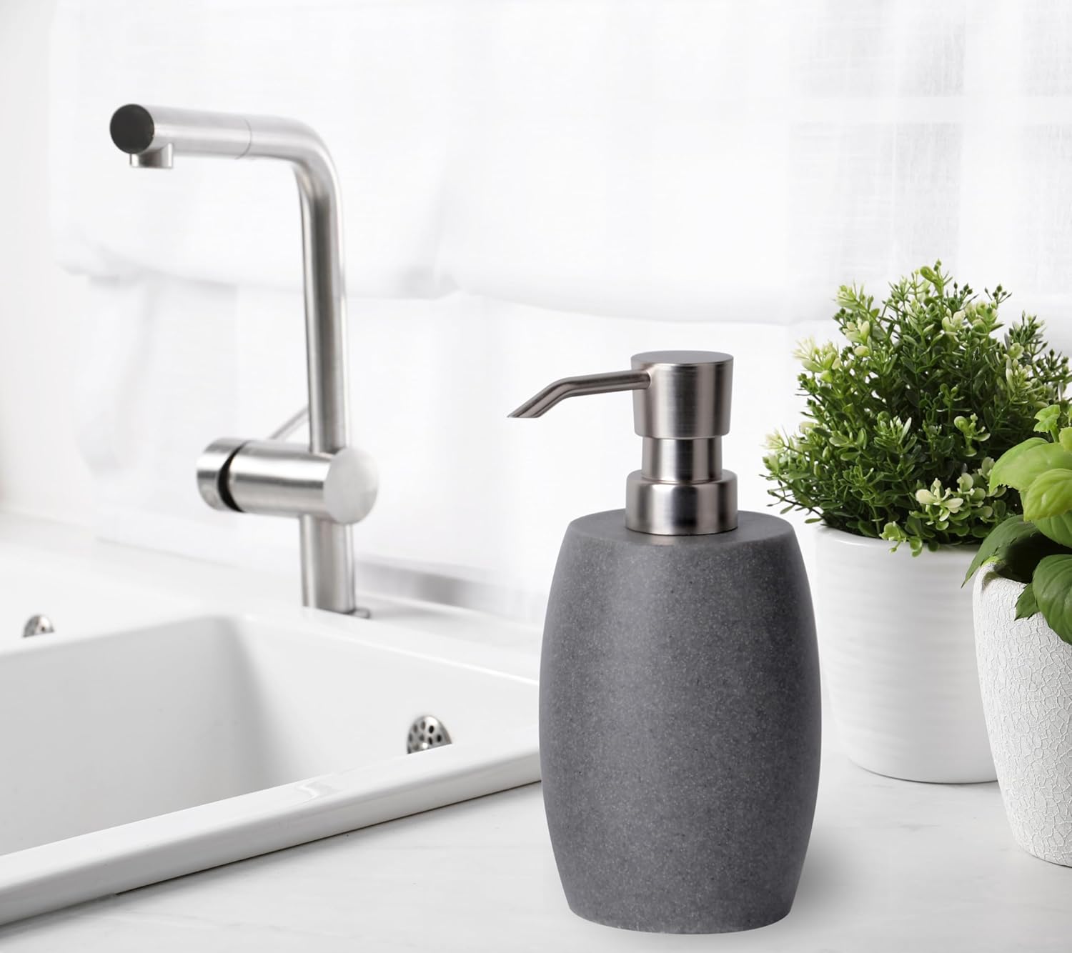 - 【MINIMALIST & GIFT IDEA】 Our dish soap dispenser exudes understated sophistication with its clean lines and delicate sandstone-like texture. It seamlessly integrates into modern spaces and decor, enhancing the ambiance of any occasion, whether in the bathroom, kitchen, or office. It also makes an ideal gift for family and friends.