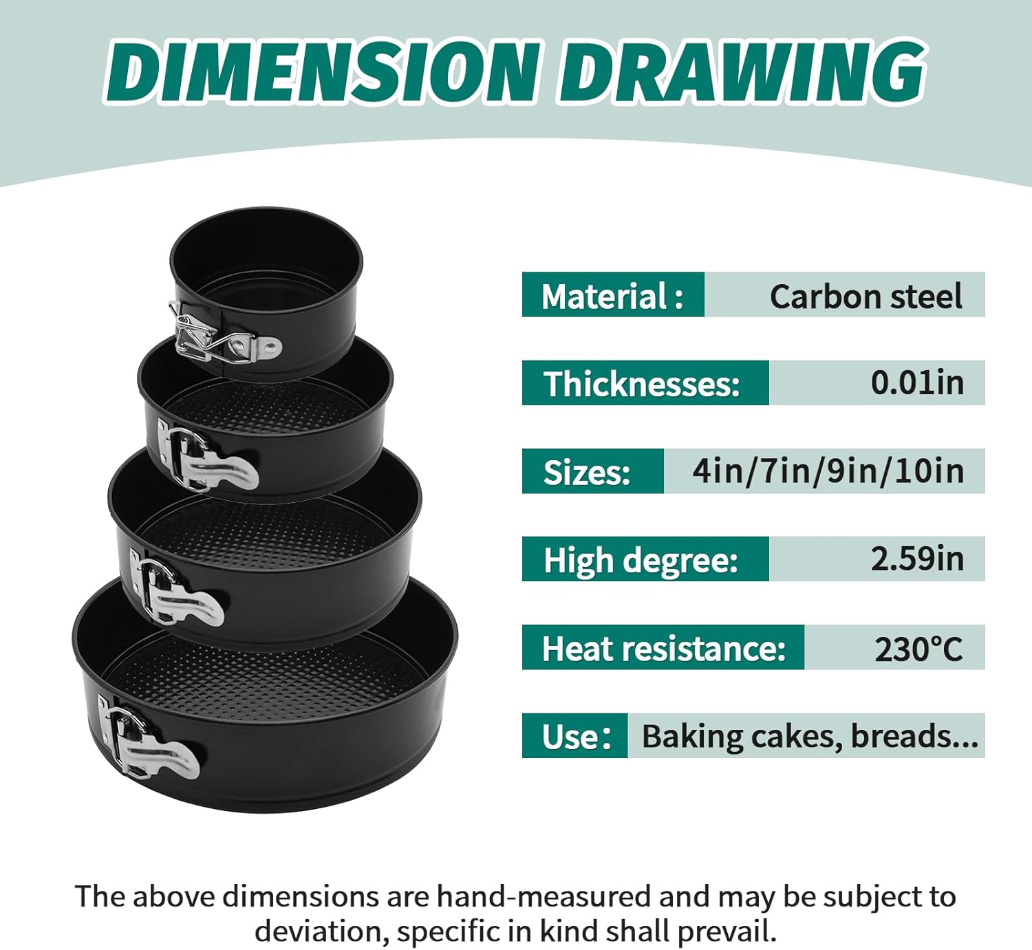 - 【Baker’s Friend 】: Set includes (4,7,9,10 inch) springform pan,deep cake pan set lets you bake everything better for perfect results with cheesecake, brownie, deep dish pizza, lasagna, casserole, and quiche.