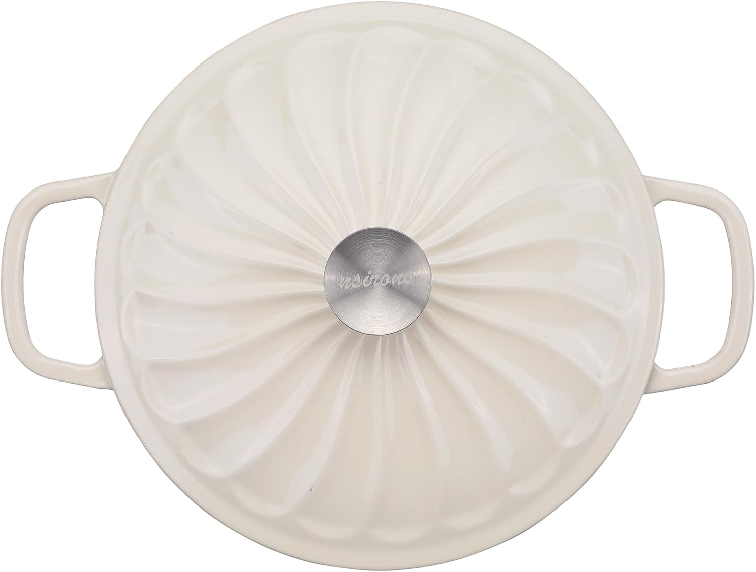 Enameled Cast Iron Braiser, 3.8 Quart Enamel Dutch Oven with Handles, Cast Iron Braiser Pan with Lid,Enameled Cookware (White)