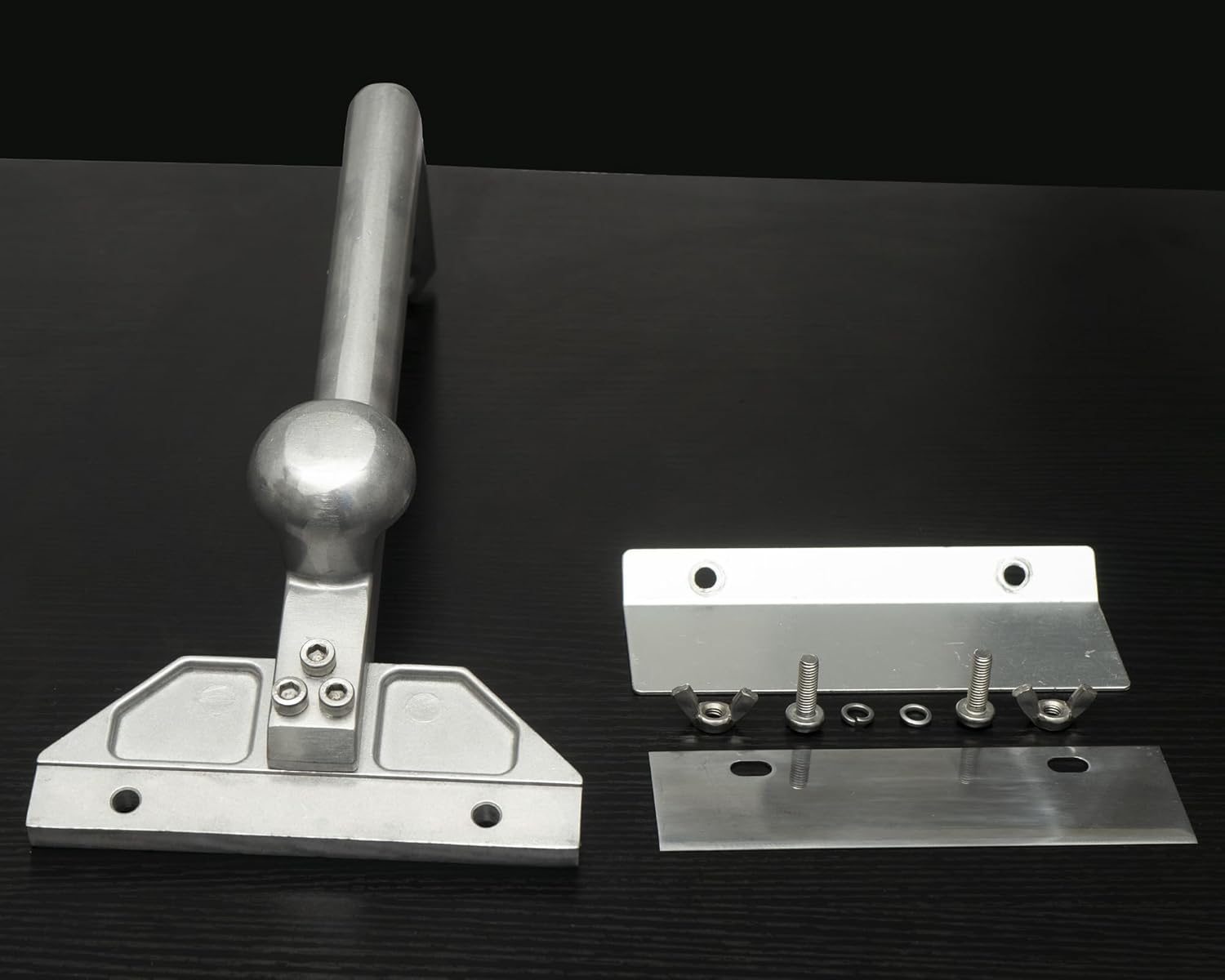 - Spesification & Material - Huoyanshe Grill Scraper is made of heavy-duty cast aluminum construction with stainless steel blades. It is a perfect flat top grill scraper for commercial or individual purposes. Dimesion 16"L*6"W*4"H; It comes with 1x long griddle scraper, 5 blades (4 replacement blades + installed blade) and 1xsmall slant edge grill scraper.